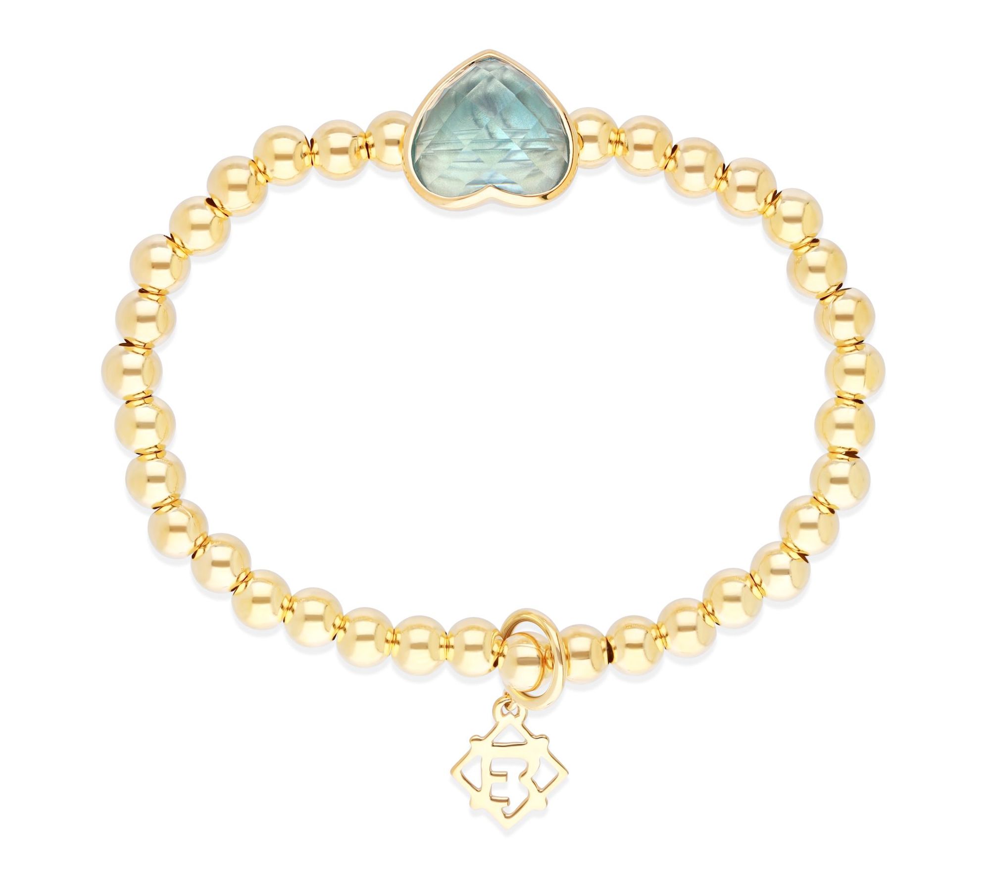 Brighten your day and add a hint of romance with this beaded stretch bracelet, featuring a sweet heart-shaped blue topaz set amid shimmering 14K yellow gold-clad sterling silver beads. The pop of sky blue and touch of gold create a playful accessory to wear solo or stack for girls' night or brunch. From Elyse Ryan.