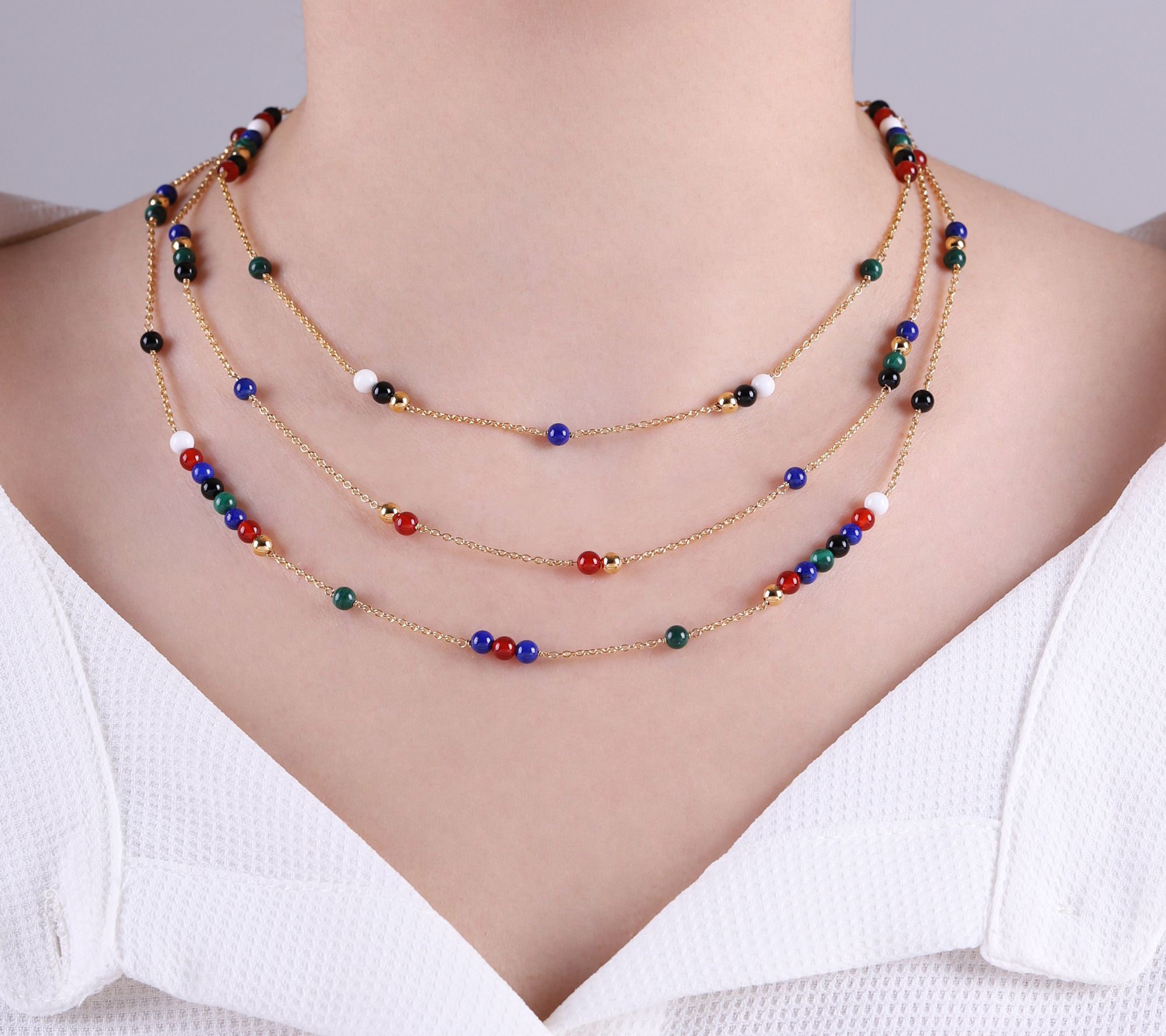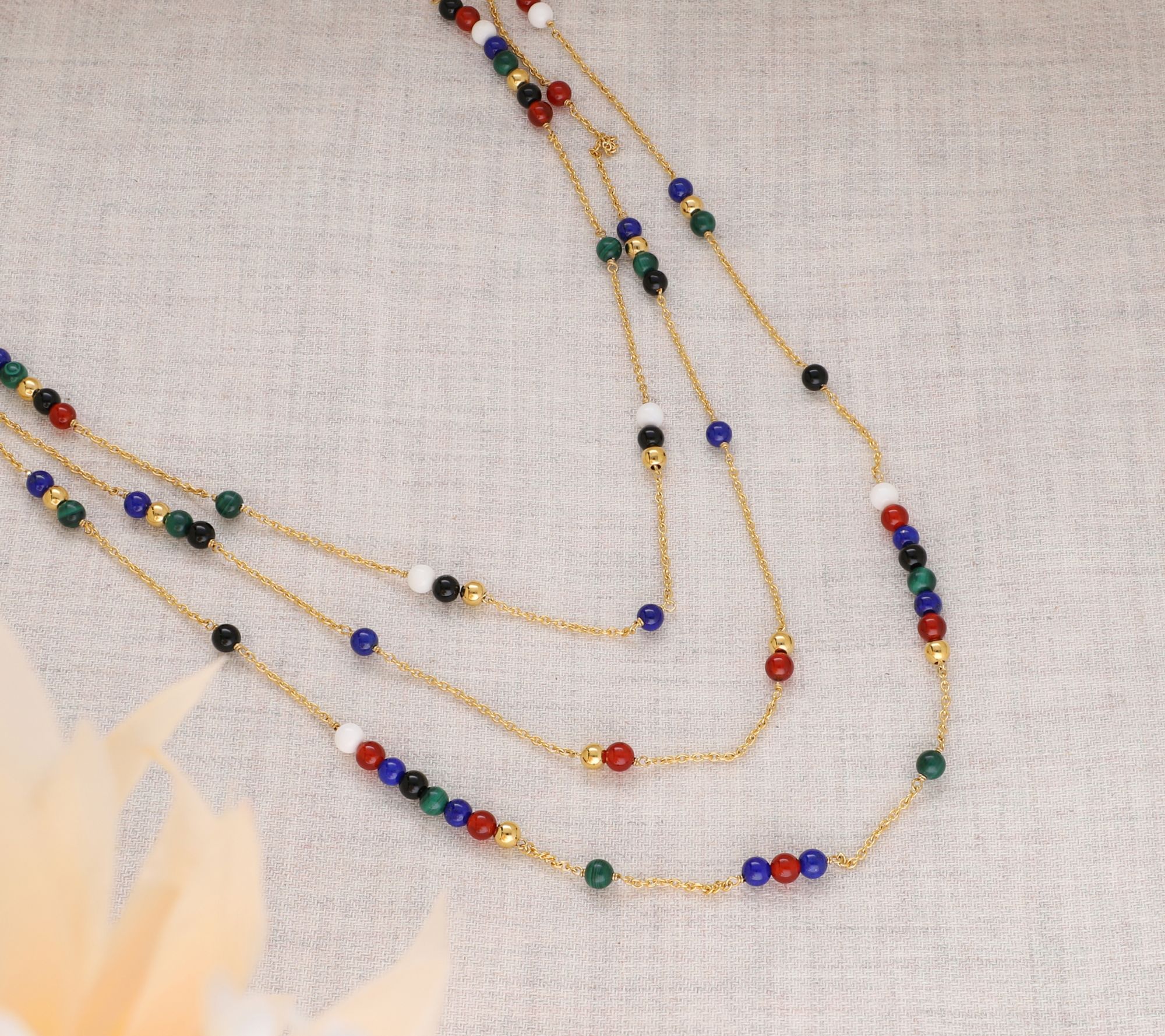 Bring vibrant color to your everyday outfits with this Elyse Ryan Gemstone Bead Layered Georgia Necklace, a fabulous mix of carnelian, lapis, malachite, black onyx, and white agate beads. From Elyse Ryan.