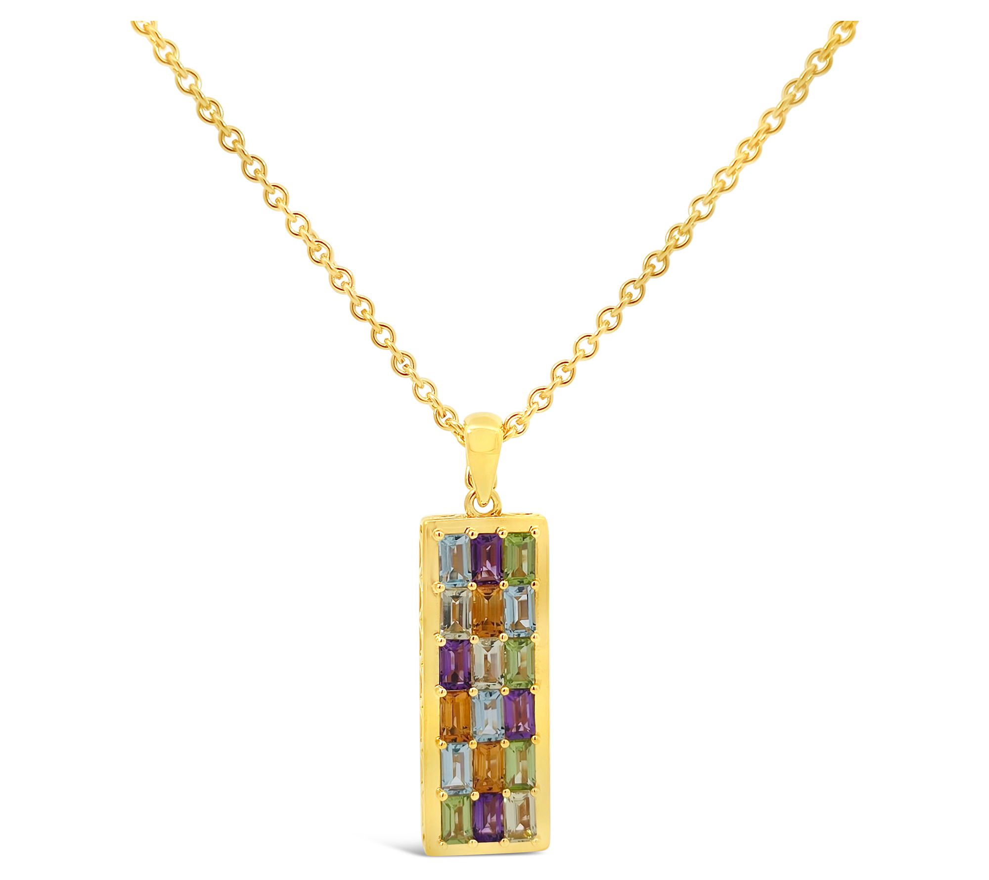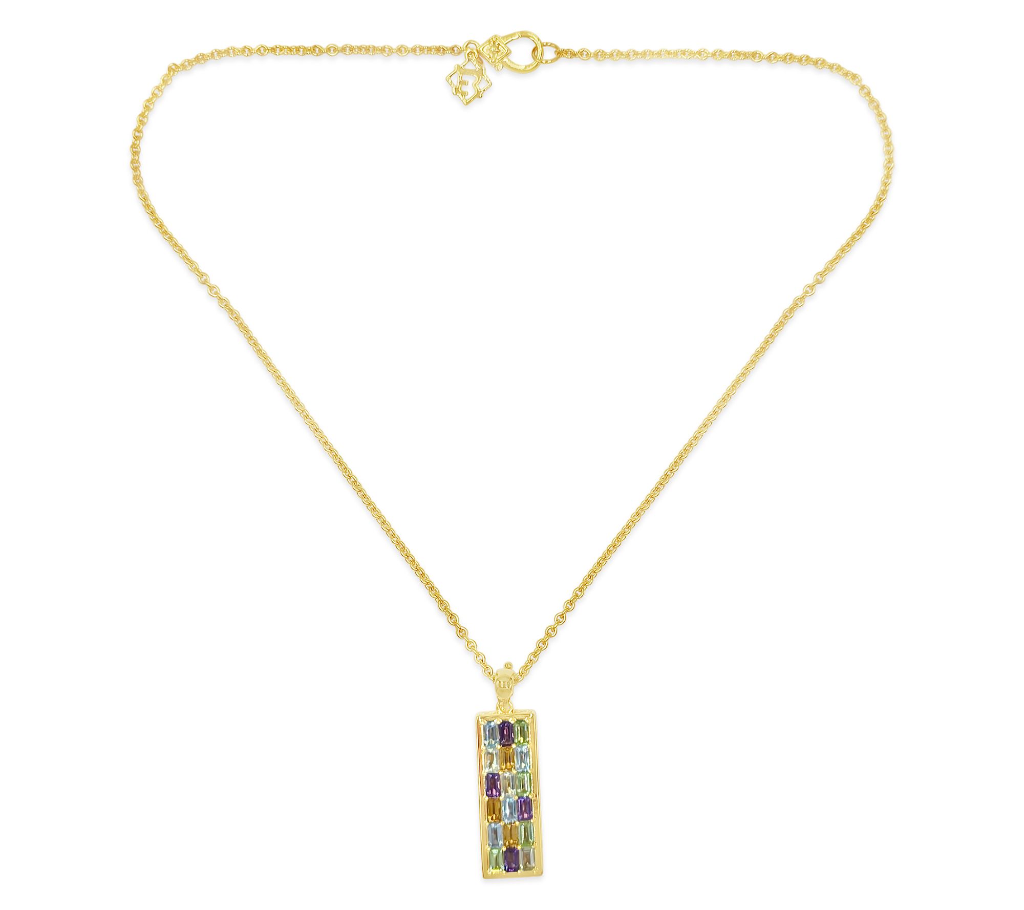 Imagine the sparkle of vibrant gemstones catching the sunlight as you step out for a weekend brunch or an afternoon garden party. This exquisite piece, designed for those who love a burst of color and elegance combined, features a striking blend of gemstones, each carefully set to enhance its alluring radiance. The rich hues of peridot, citrine, mint quartz, topaz, and amethyst beautifully align in a stunning arrangement that is both sophisticated and versatile. From Elyse Ryan.