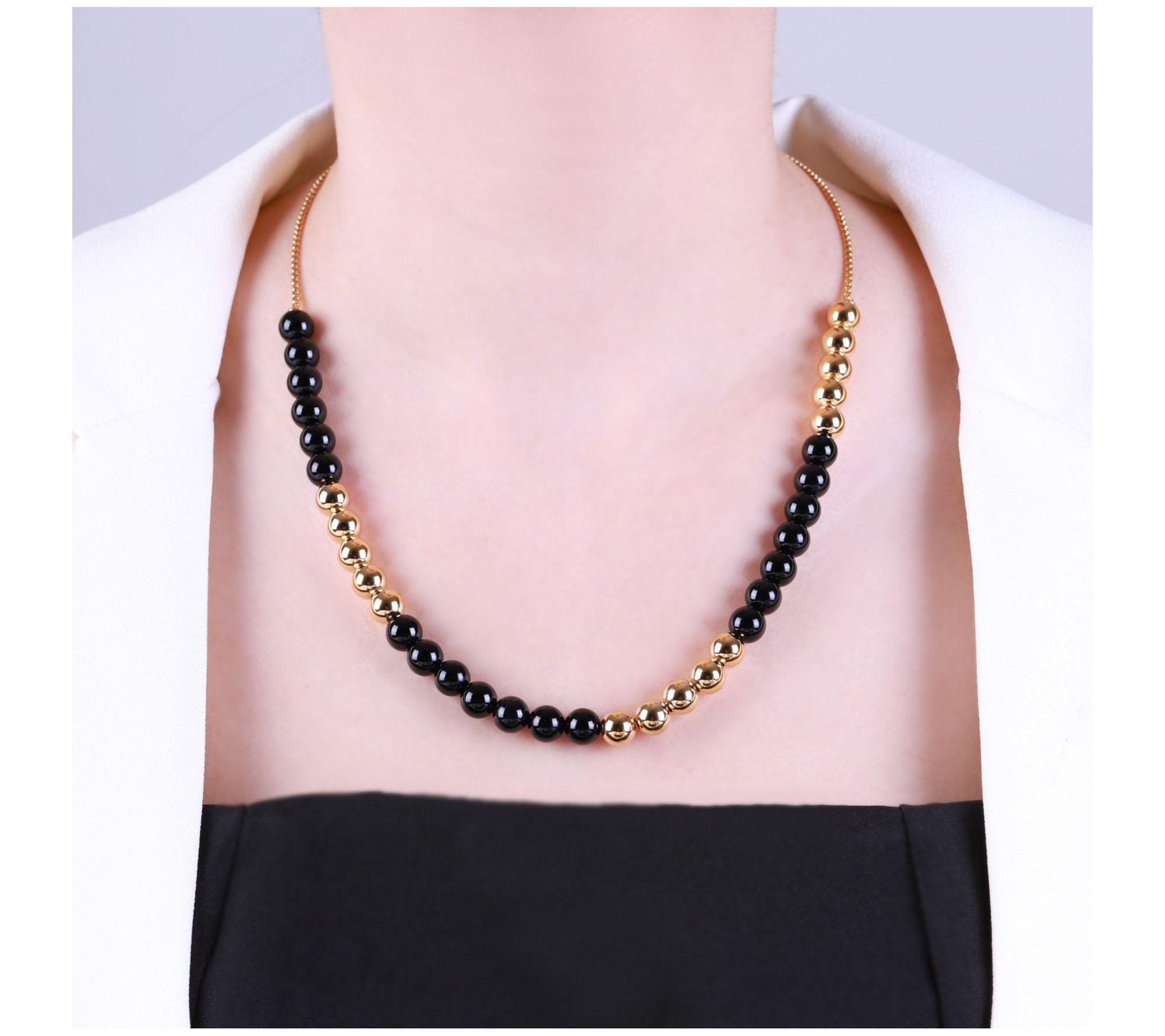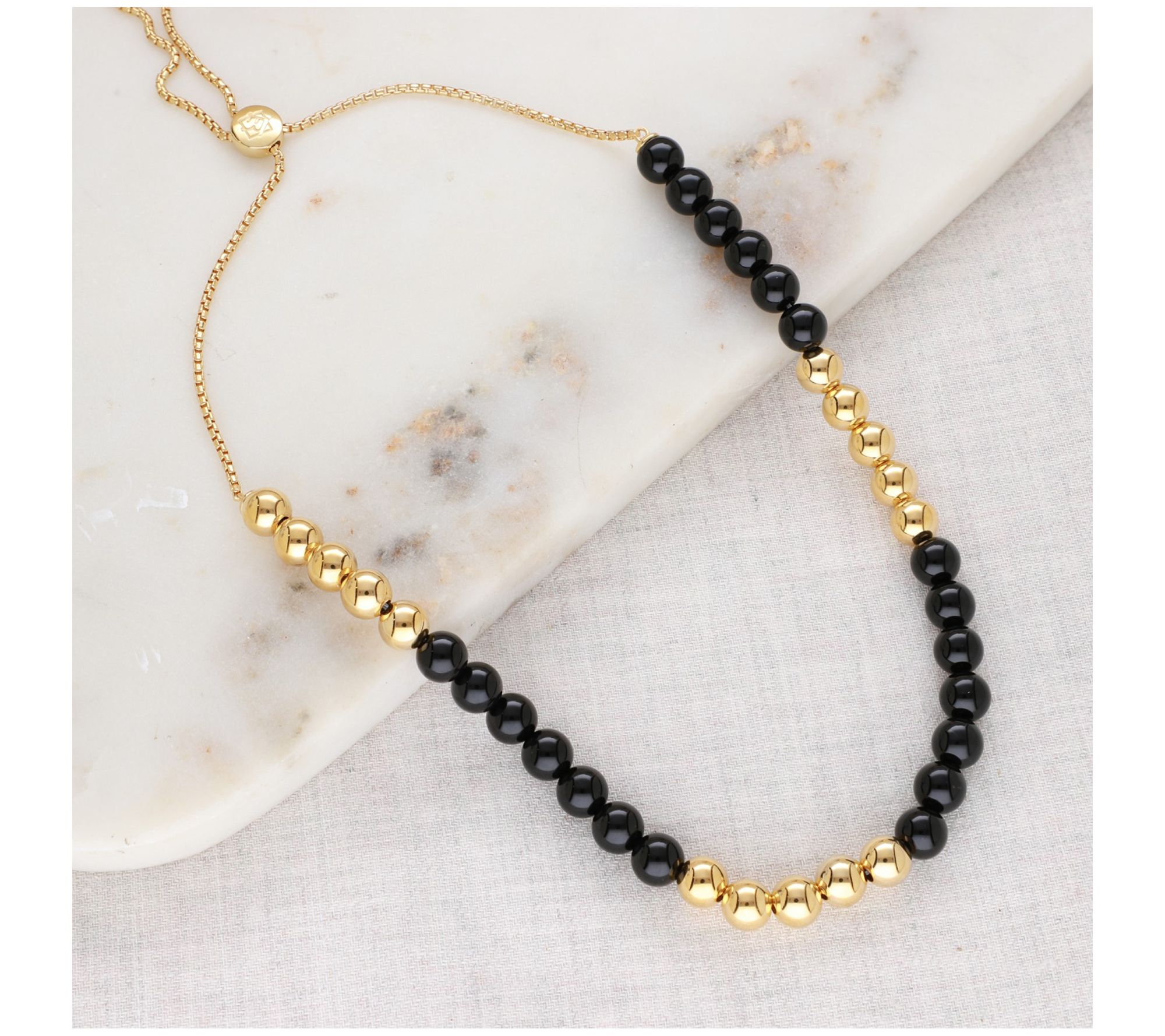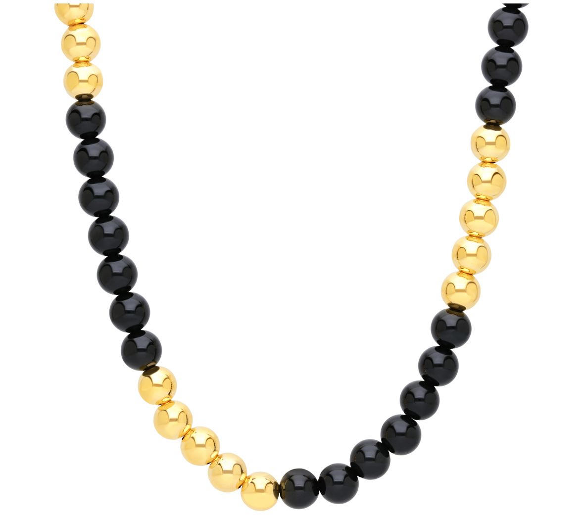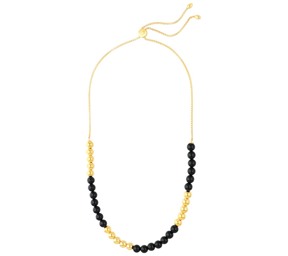 - Mix of 14K yellow gold-plated and onyx beads; box chain