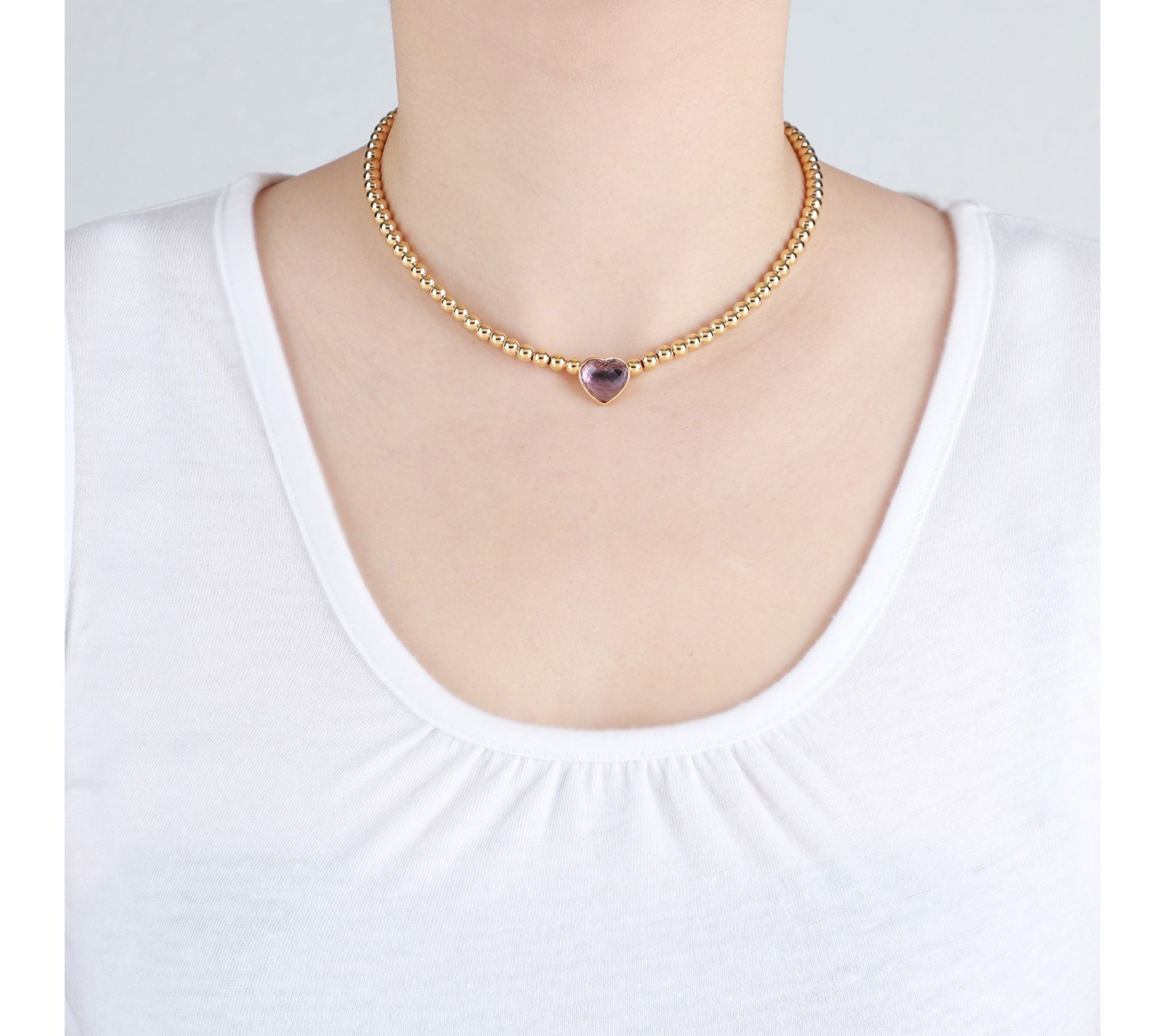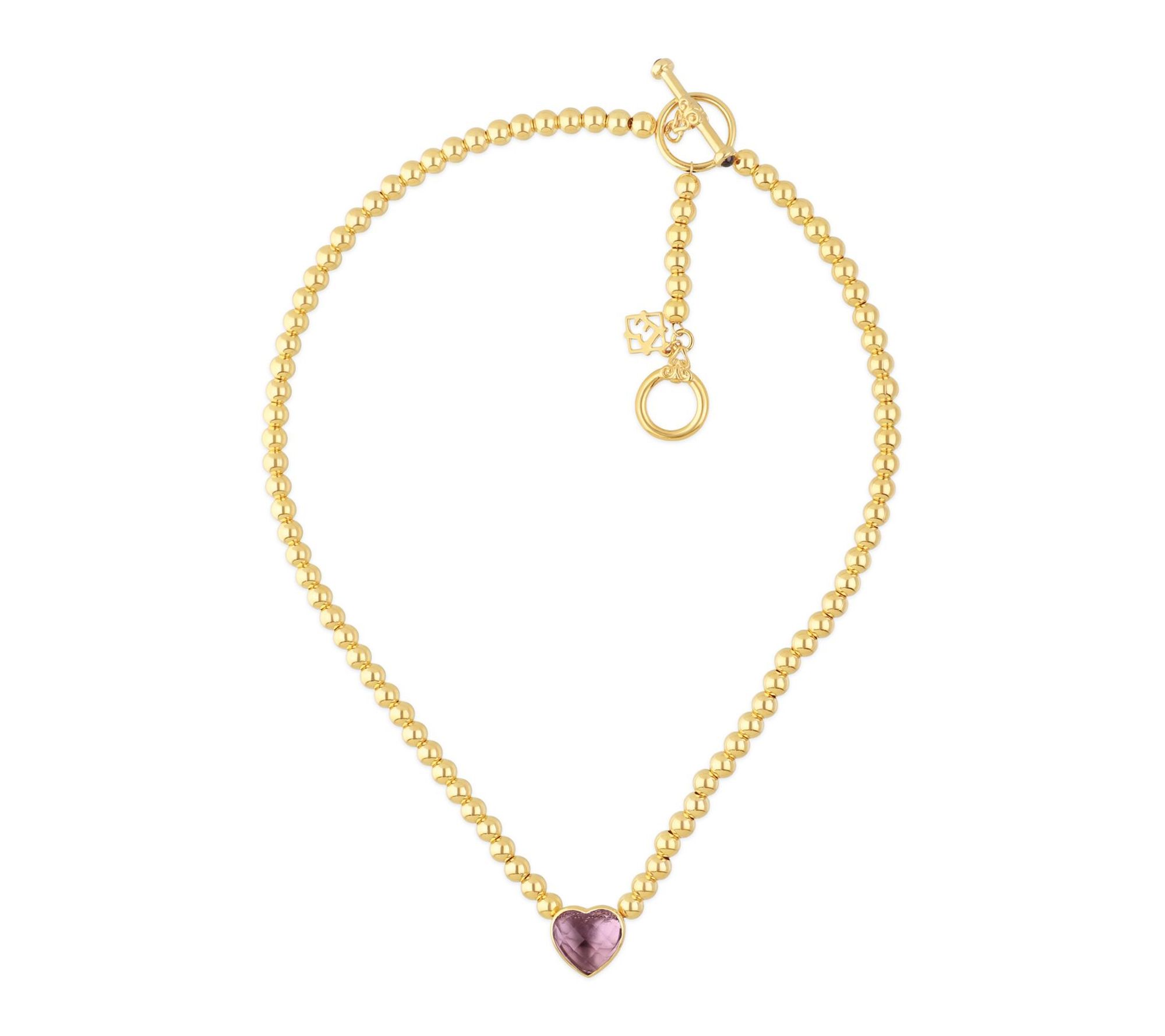 Elyse Ryan 14K Gold Clad Amethyst Heart BeadedNecklace
