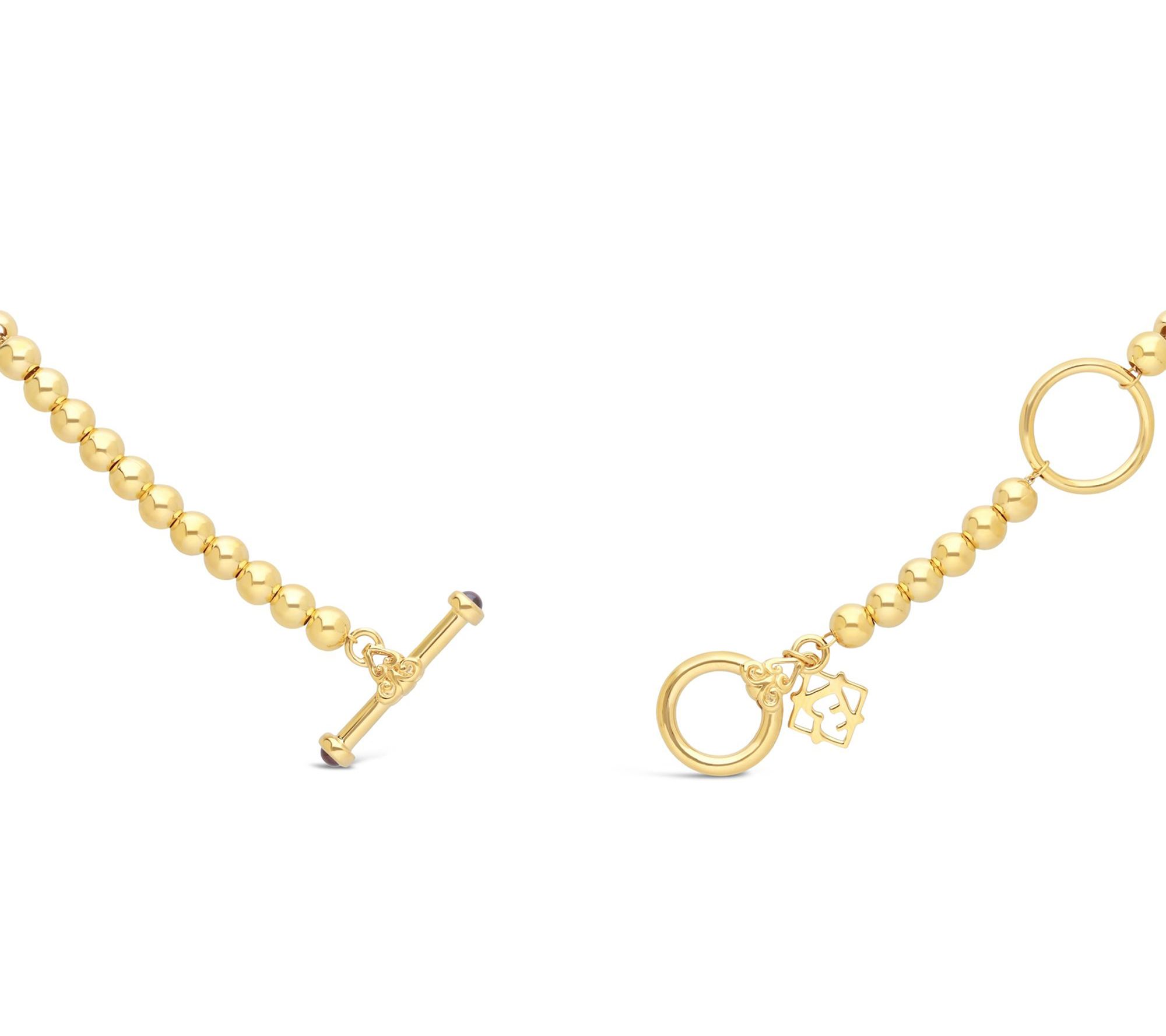 Add a splash of romance to your look with this heart-beaded necklace, a blend of radiant amethyst and fiery garnet set amid 14K yellow gold-clad sterling silver. Whether you're dressing up for an evening out or adding a sophisticated accent to your everyday style, each luminous bead and sparkling gemstone tells a story of bold elegance. From Elyse Ryan.