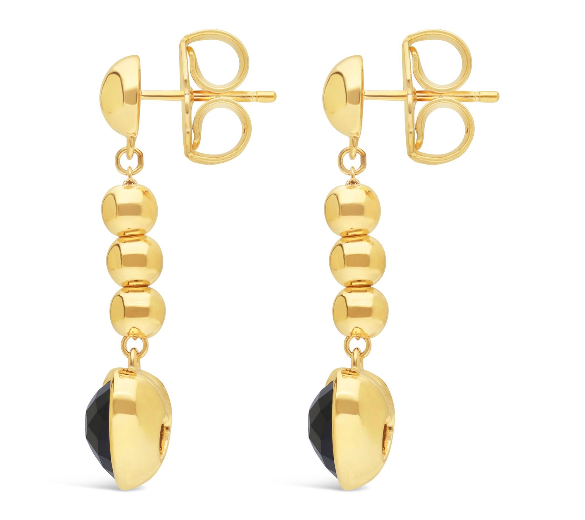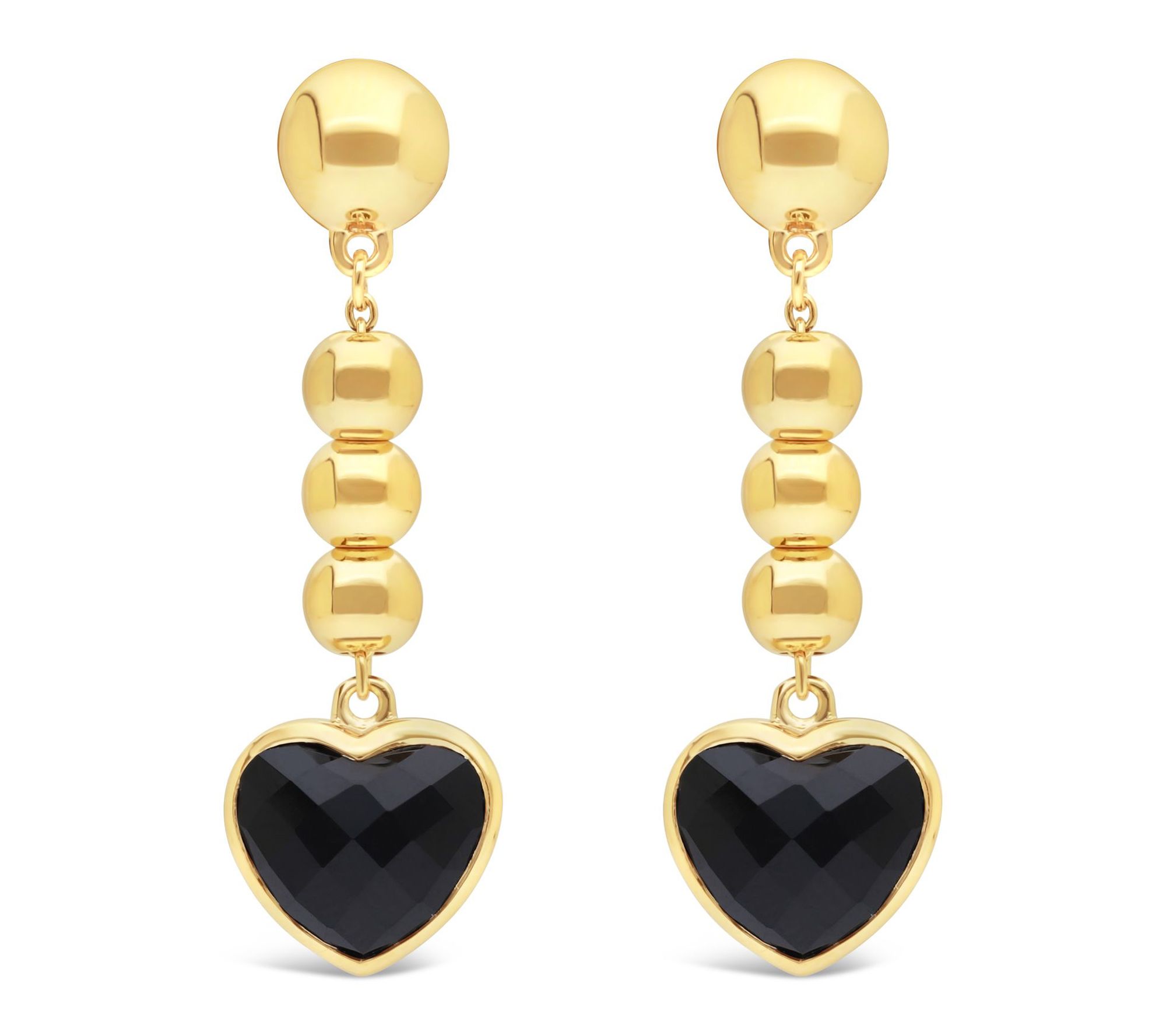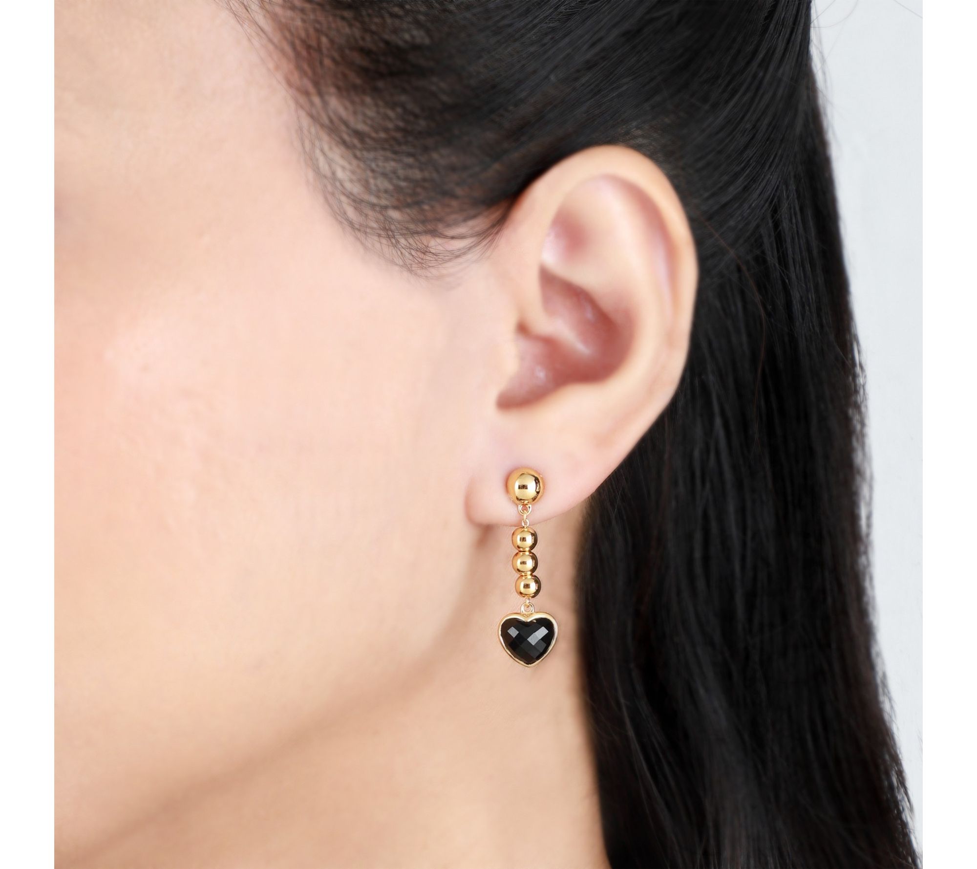 A sweet way to show your flair for statement accessories, these heart drop earrings add sophistication with onyx set in a warm glow of 14K yellow gold-clad sterling silver. The dynamic design shines whether you're dressing up for a special event or adding a pop of personality to your favorite everyday look. From Elyse Ryan.