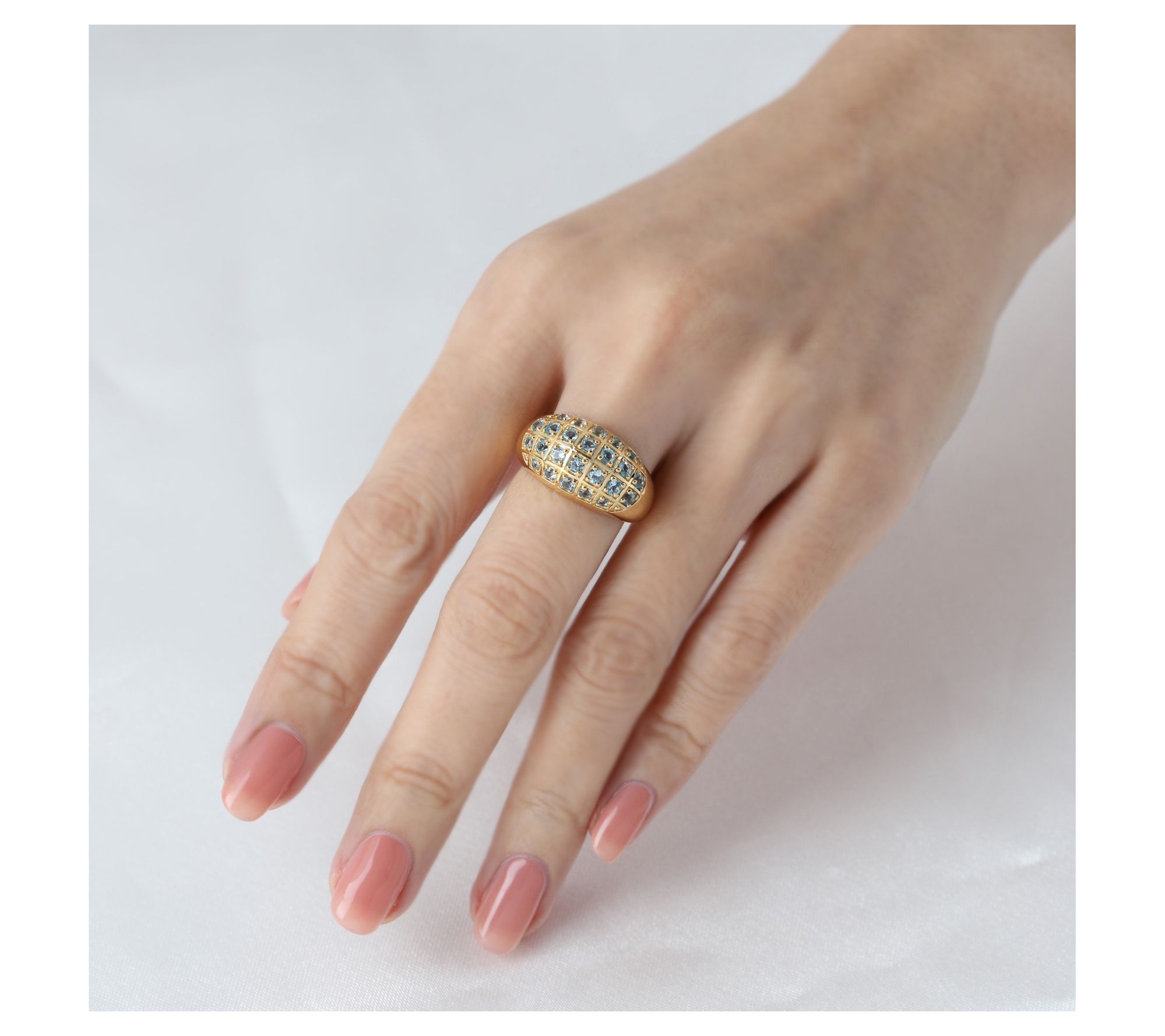 When soft blue hues call for a statement, nothing answers quite like this striking piece, making those brunches or after-work events a little more extraordinary. Bright, polished surfaces meet the tranquil allure of Swiss blue topaz, blending everyday style with a hint of occasion. Style it solo, or with your favorite gold bangle. From Elyse Ryan.