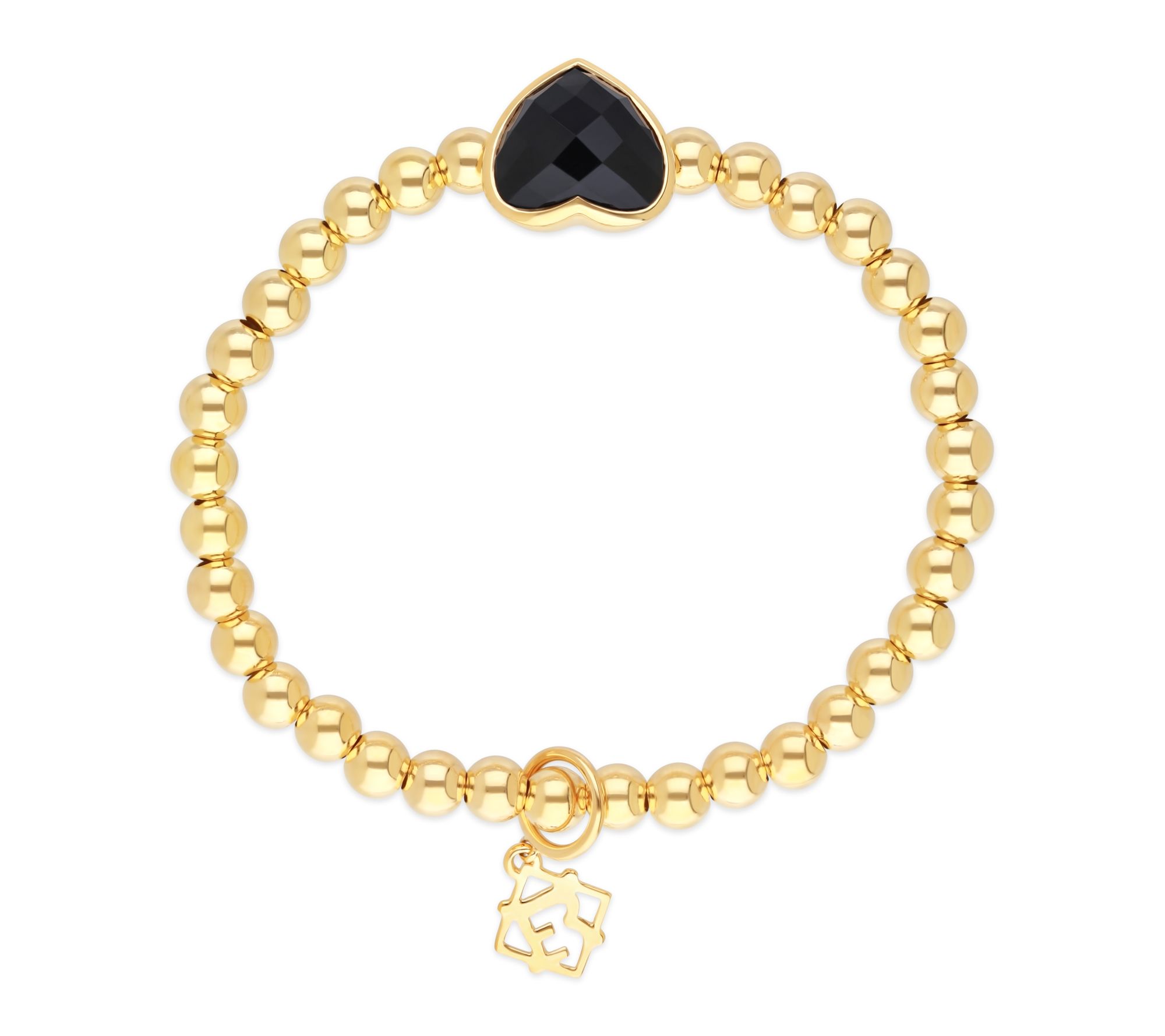 Let your individuality shine with this beaded stretch bracelet -- a combination of gleaming 14K gold-clad sterling silver and rich black onyx, crowned by a striking faceted heart charm at its center. Effortlessly stylish and designed for everyday wear, it's a meaningful accent to any outfit and adds a hint of luxury to special occasions. From Elyse Ryan.