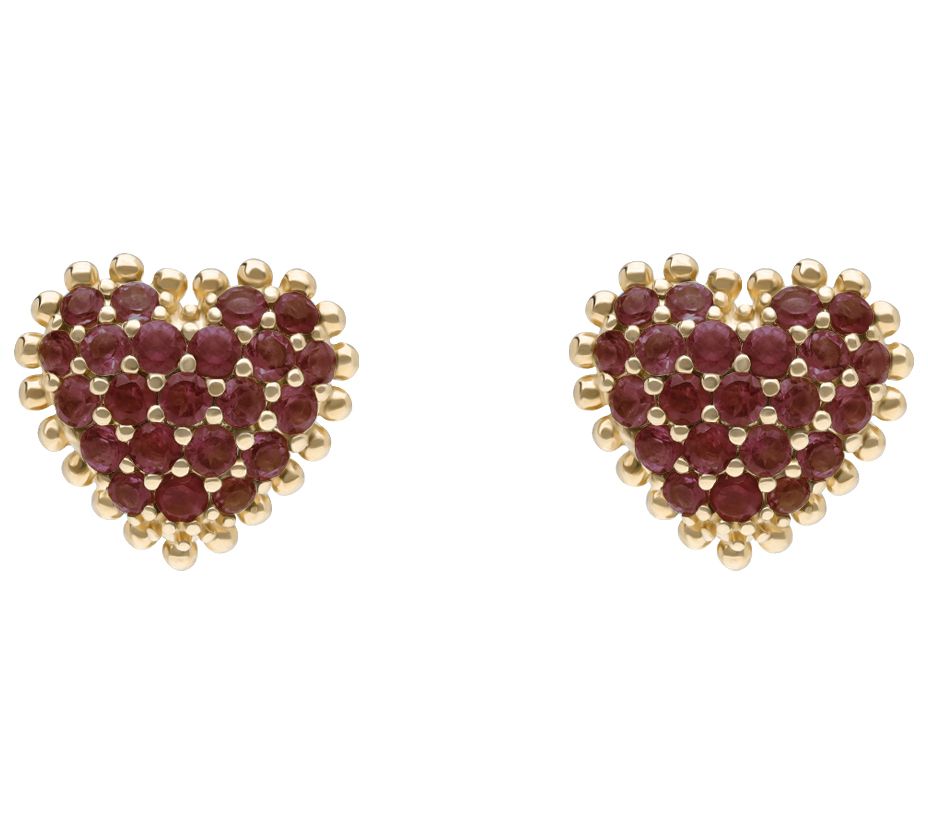 Heart-shaped stud earrings with pave-set gemstones