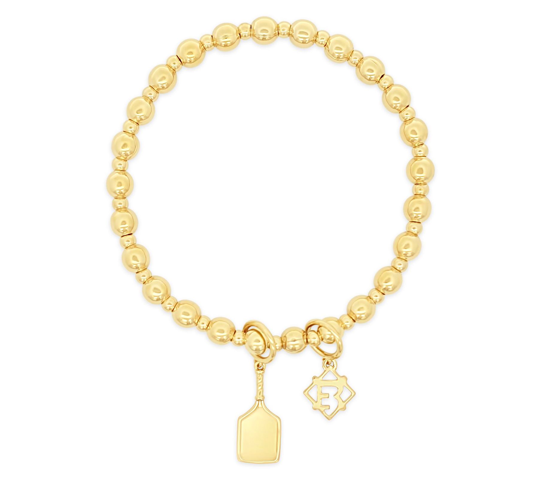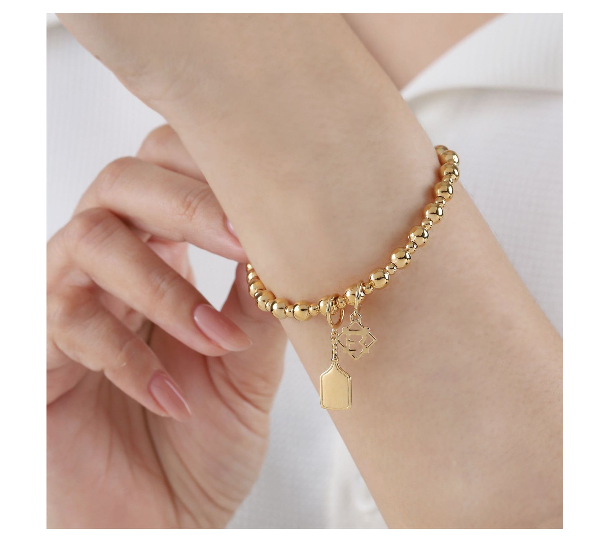 For everyday moments or friendly matches, this beaded bracelet adds a playful touch with its pickleball paddle charm. A fun nod to your favorite sport, it's designed to shine whether you're courtside or catching up with friends. From Elyse Ryan.