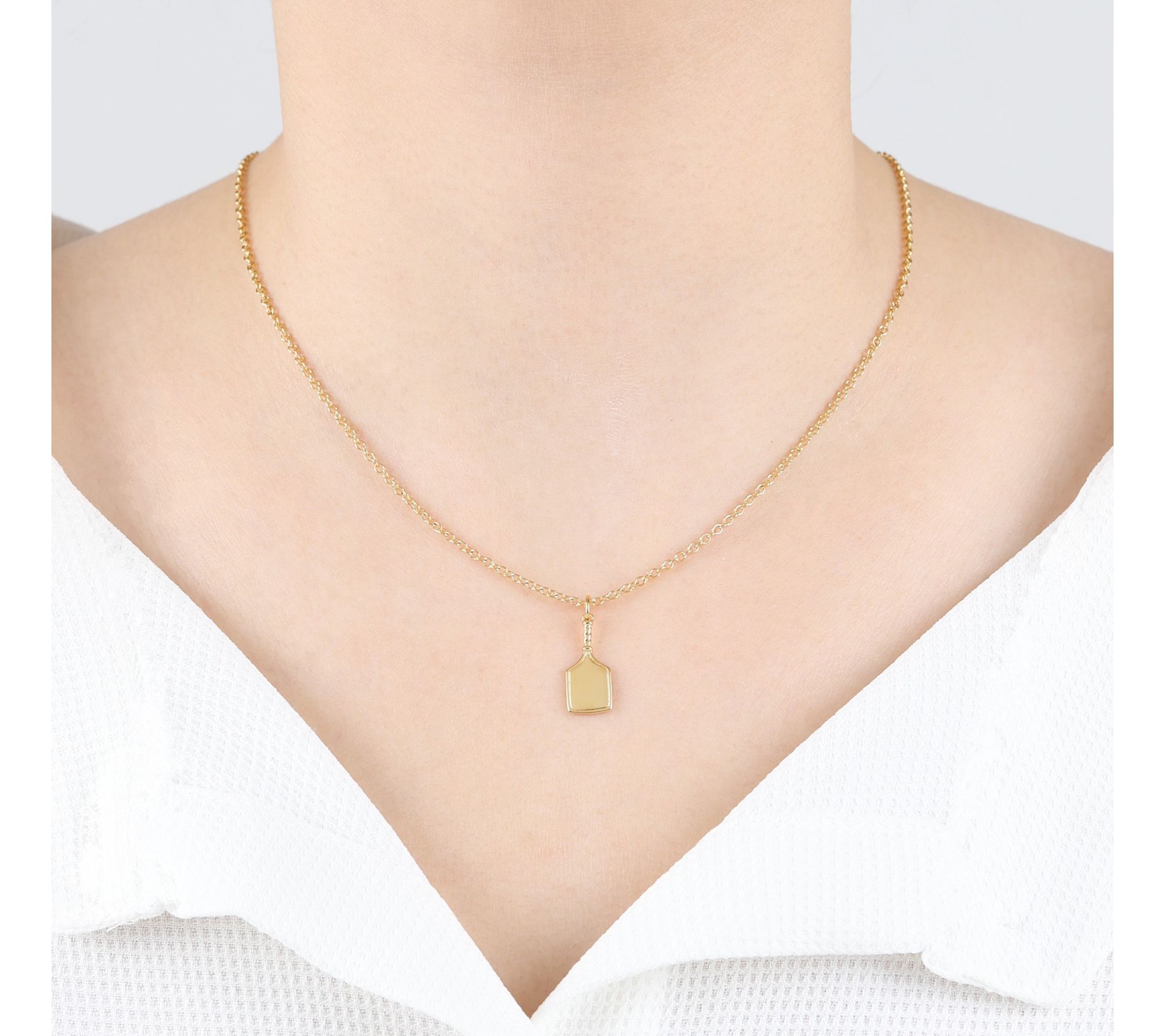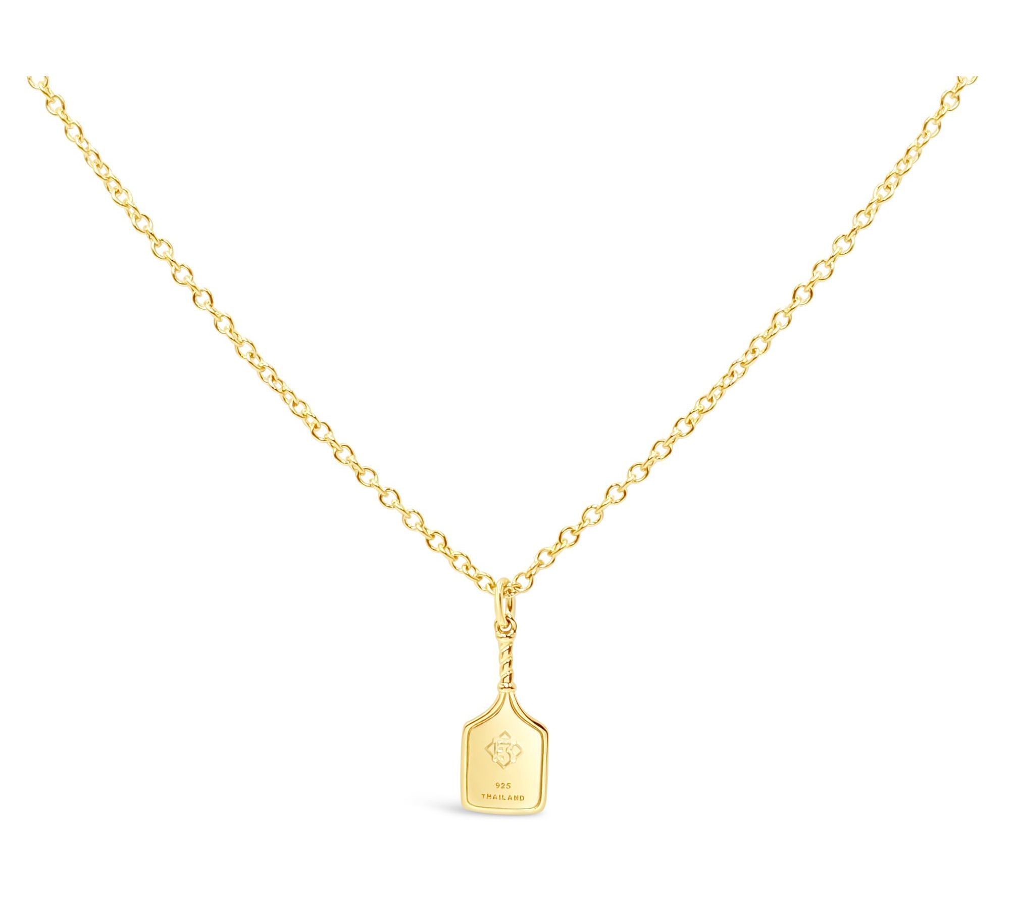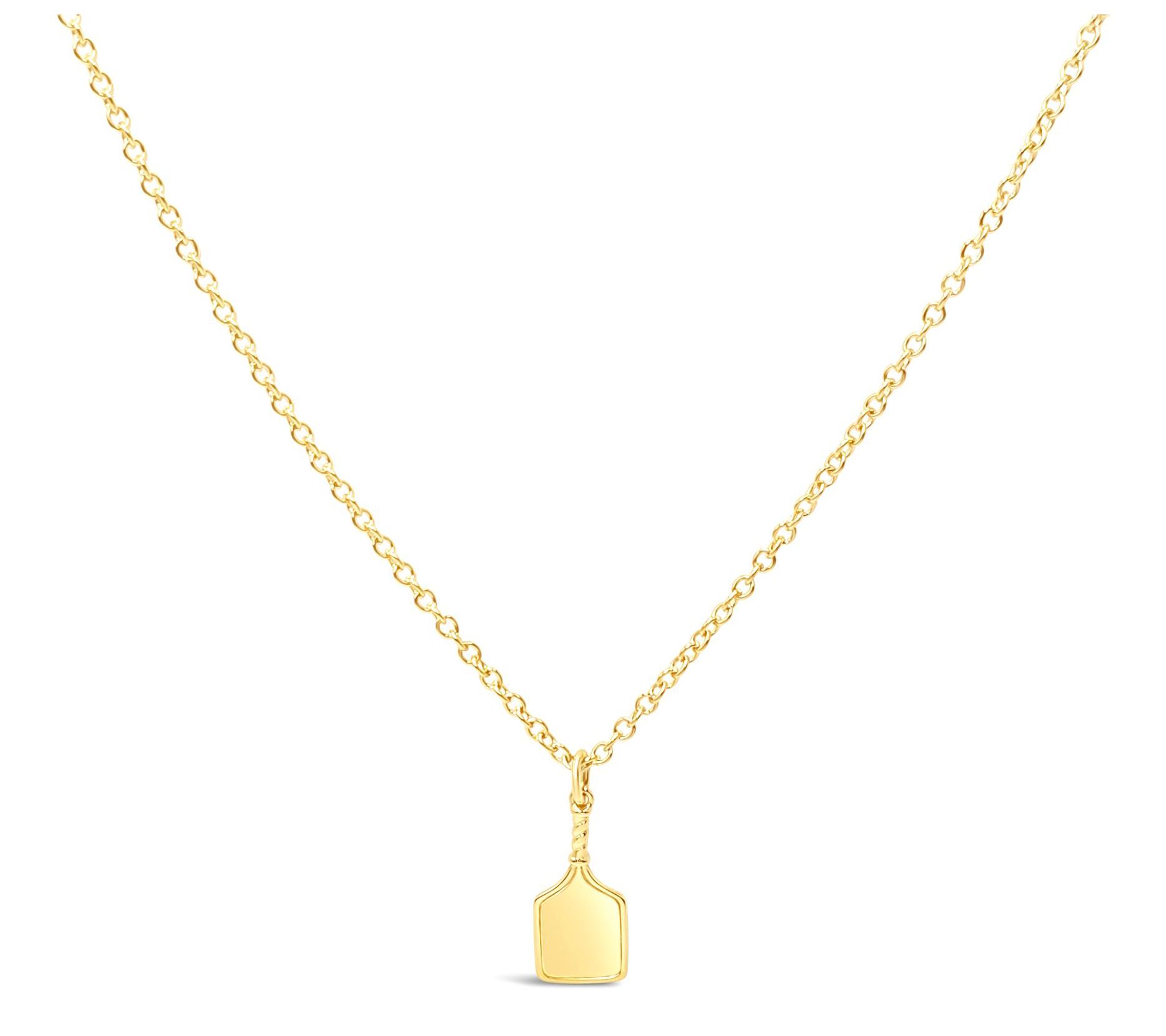 Showing up for your next pickleball match or girls' brunch just got more playful with this golden paddle pendant glinting at your neckline. Whether you're staying on the move or catching up courtside, the cheerful shine and sporty spirit of this piece sets the tone for your day. Layer it with your favorite chains for a personalized look. From Elyse Ryan.
