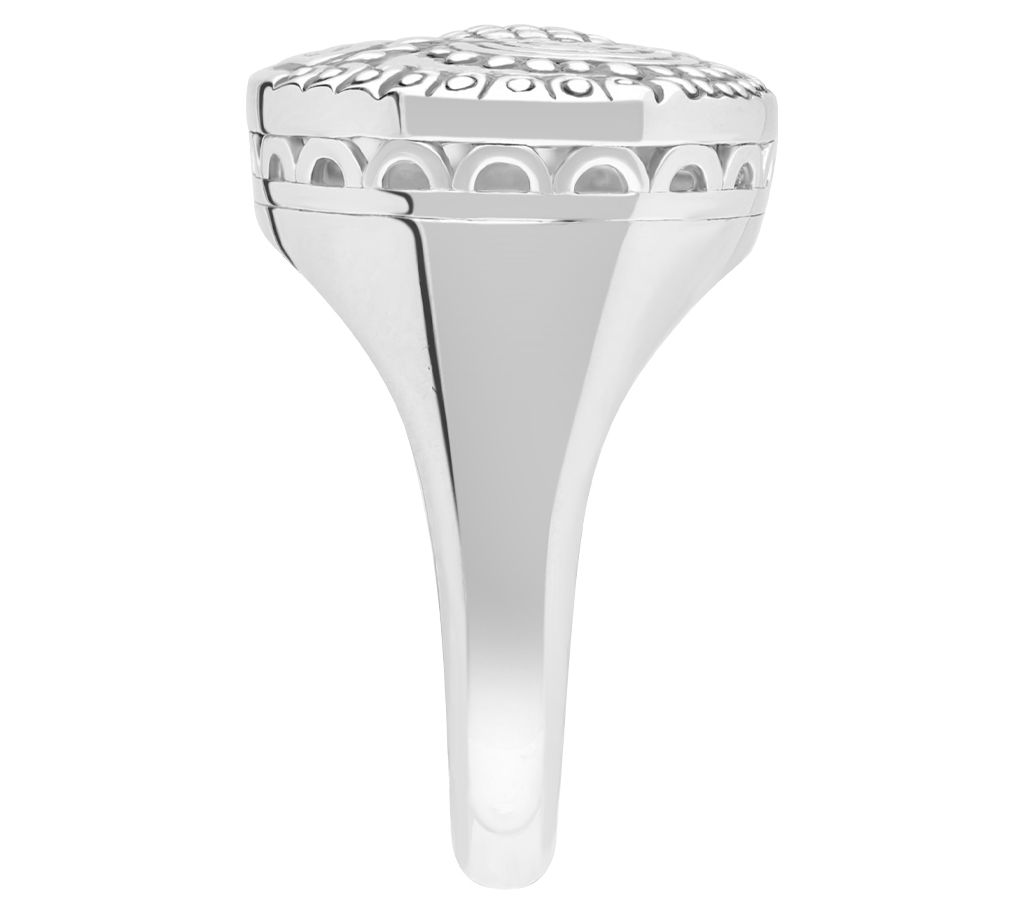 From the carved floral pattern to the scalloped detail on the sides, there's so much to love about this sterling silver ring. From Elyse Ryan.