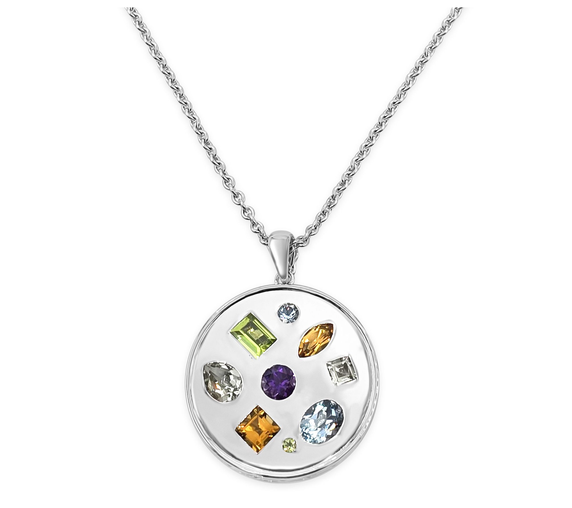 Add elegance to your favorite outfit with this Claudette pendant necklace, featuring a vibrant mix of gemstones in blue, green, yellow, and purple hues. Worn alone or layered, the high-polish sterling silver disc and colorful gems will brighten your everyday style or make a thoughtful gift for someone special. From Elyse Ryan.