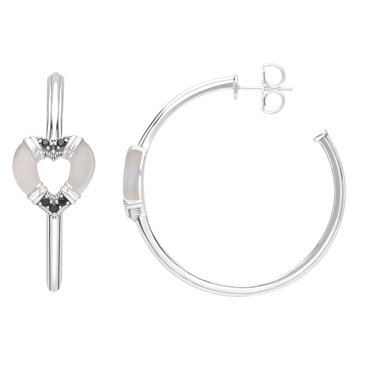 Elevate your elegance with the Elyse Ryan sterling silver heart hoop earrings. These stunning earrings feature a rock crystal heart adorned with gemstone accents to create an effortless blend of sophistication and charm. From Elyse Ryan.