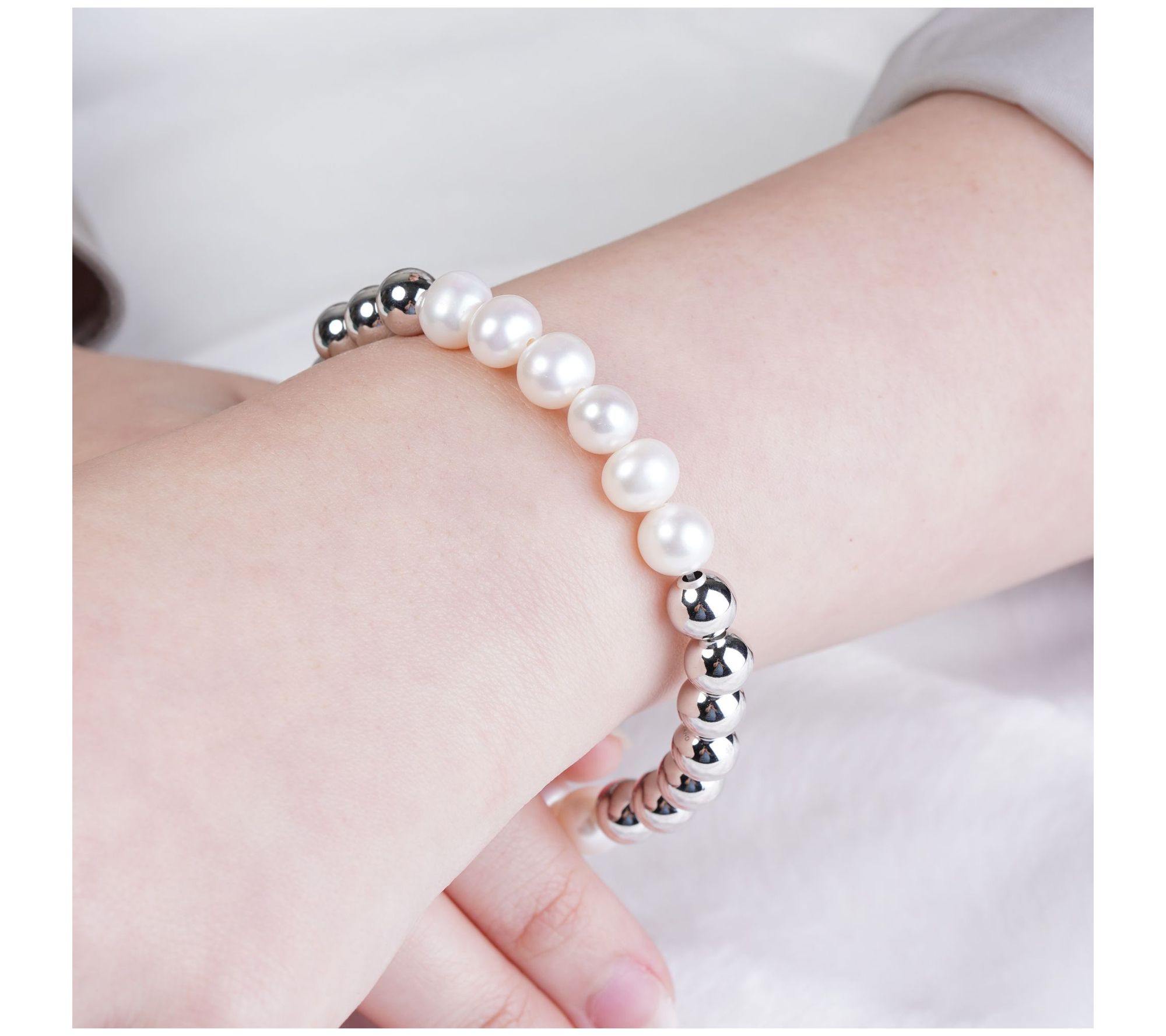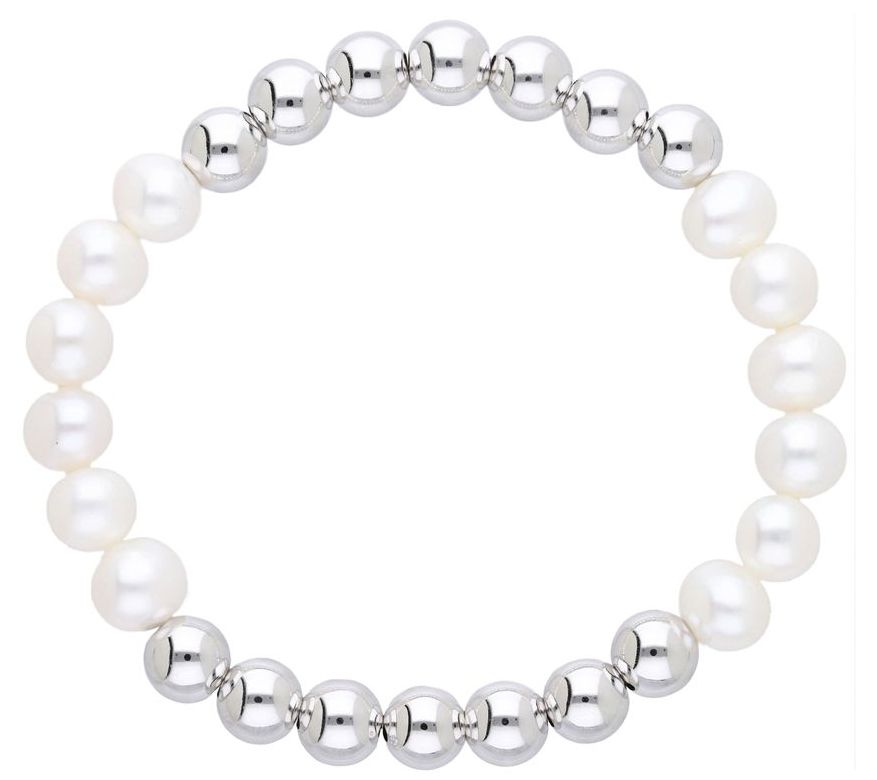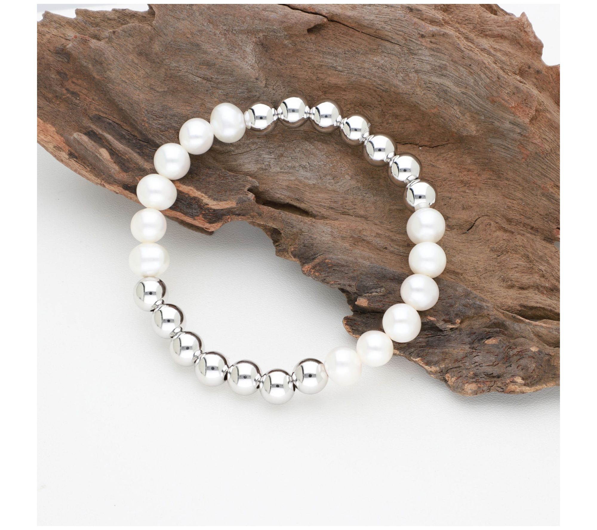 • Stretch design, cultured freshwater pearls and polished sterling silver beads