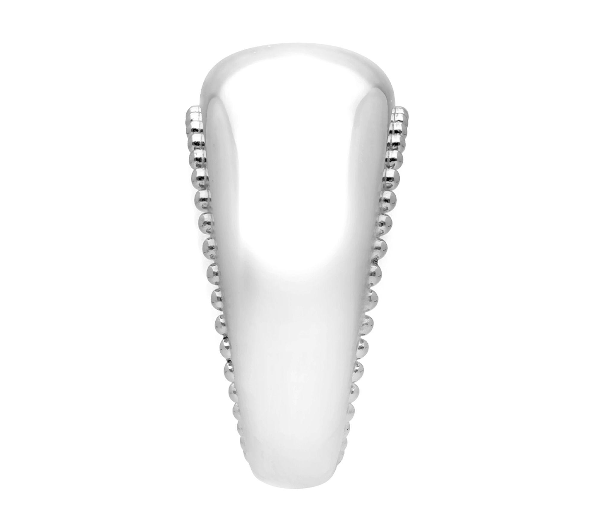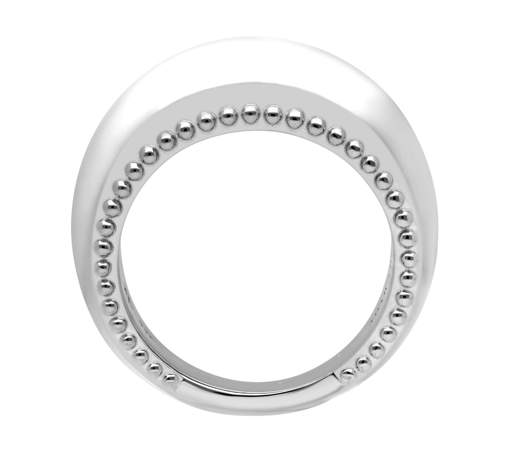 • Band ring with beaded detail at top; polished finish