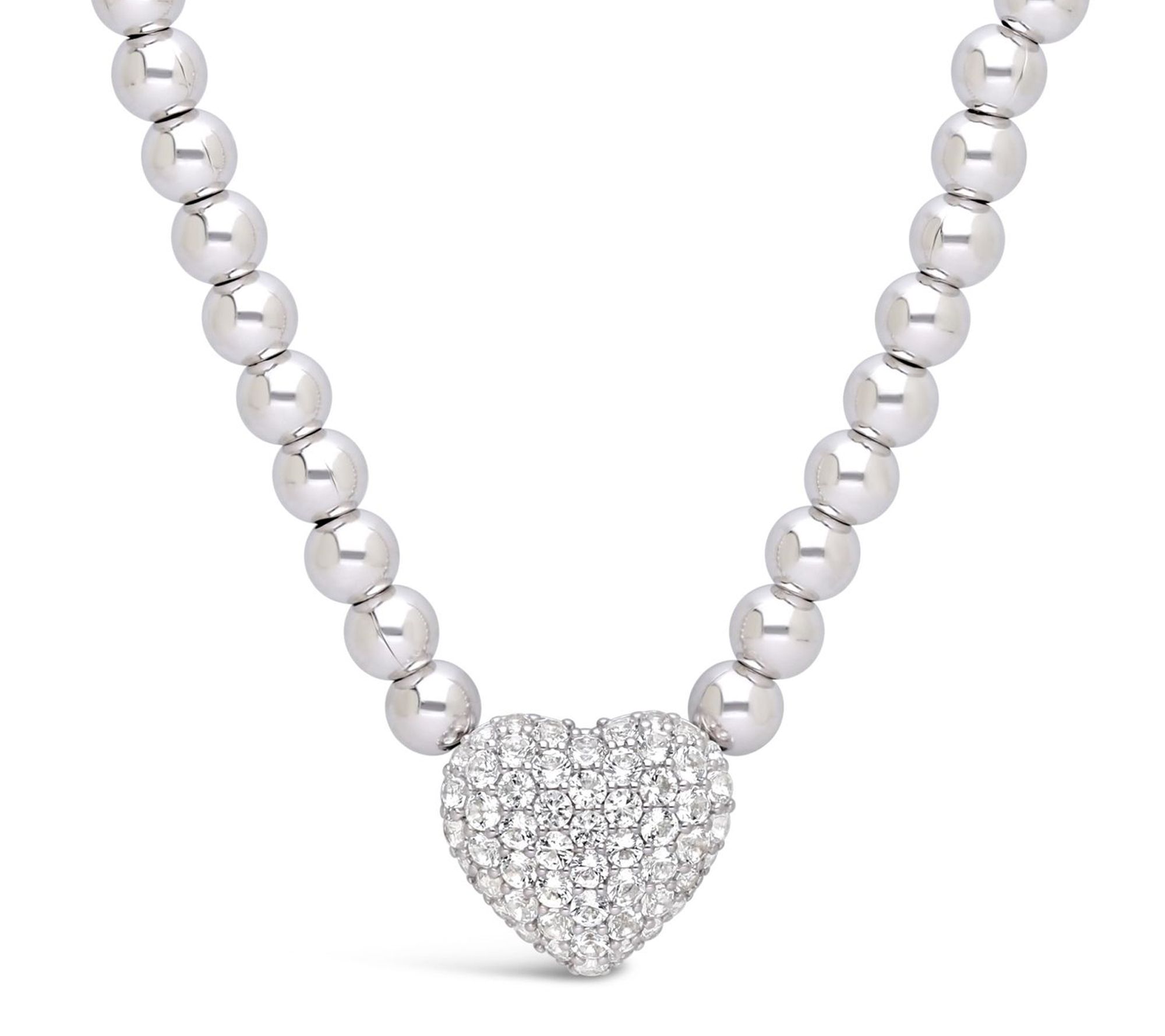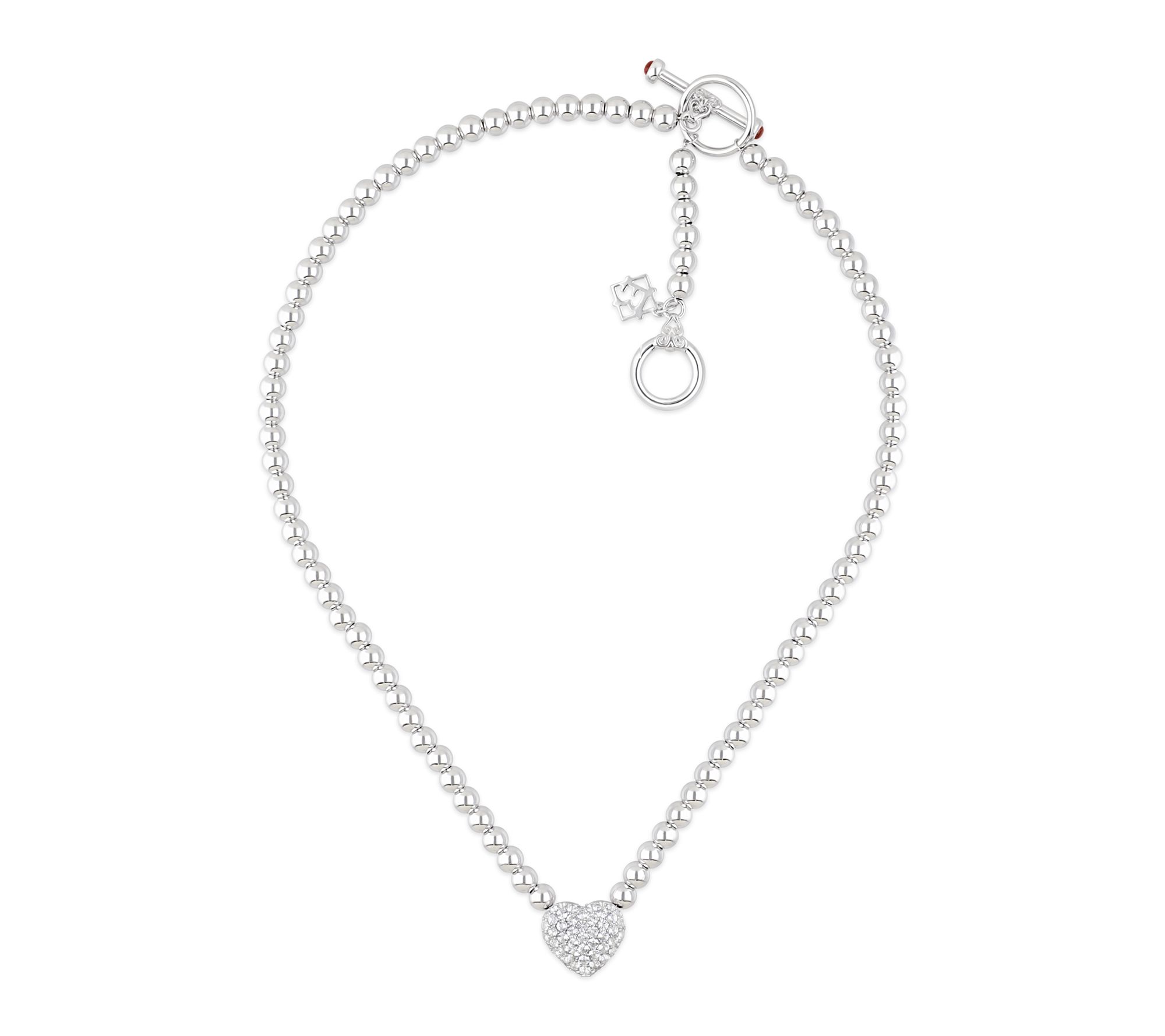 Take a moment to celebrate love and sparkle with this heart necklace, finished in sterling silver and dotted with vibrant white topaz and garnet beads. Whether you're heading out for a night with friends or adding a little shine to your everyday look, the pave heart centerpiece brings warmth and radiance with every wear. From Elyse Ryan.