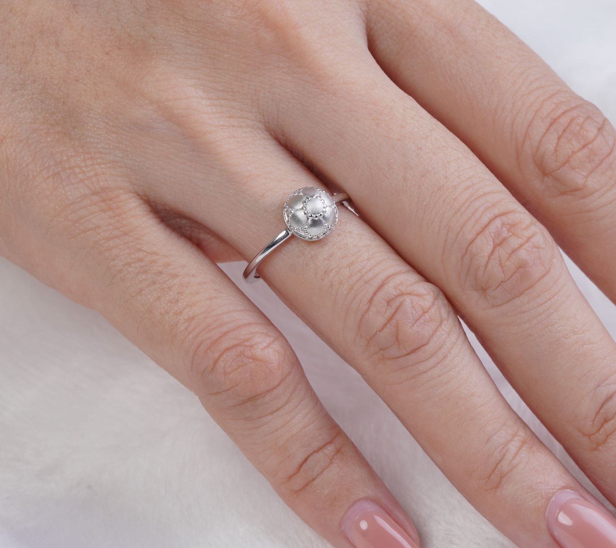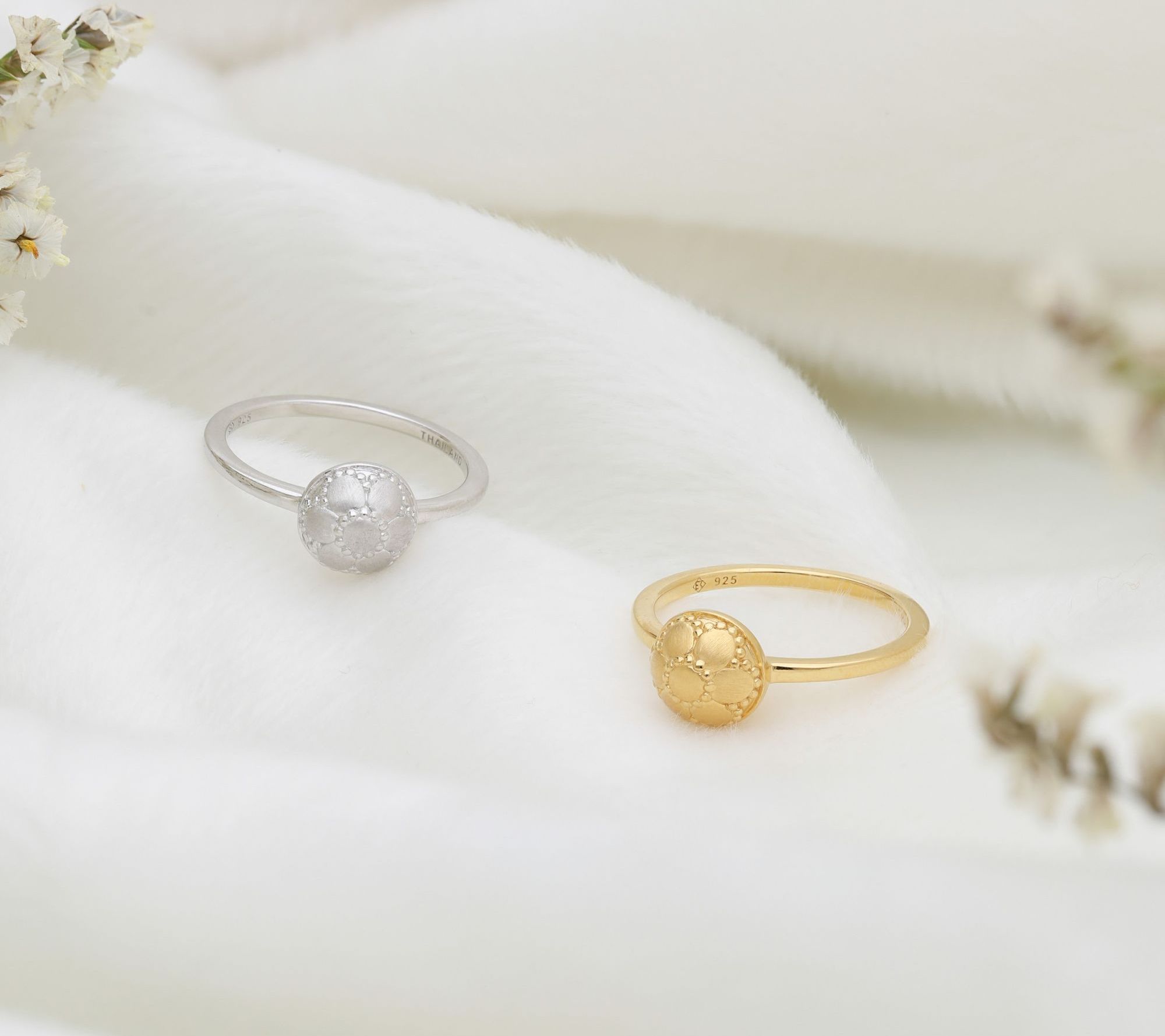 Inspire your daily style with the subtle beauty of this minimalist ring featuring a central beaded motif that recalls the petals of a flower. From Elyse Ryan.