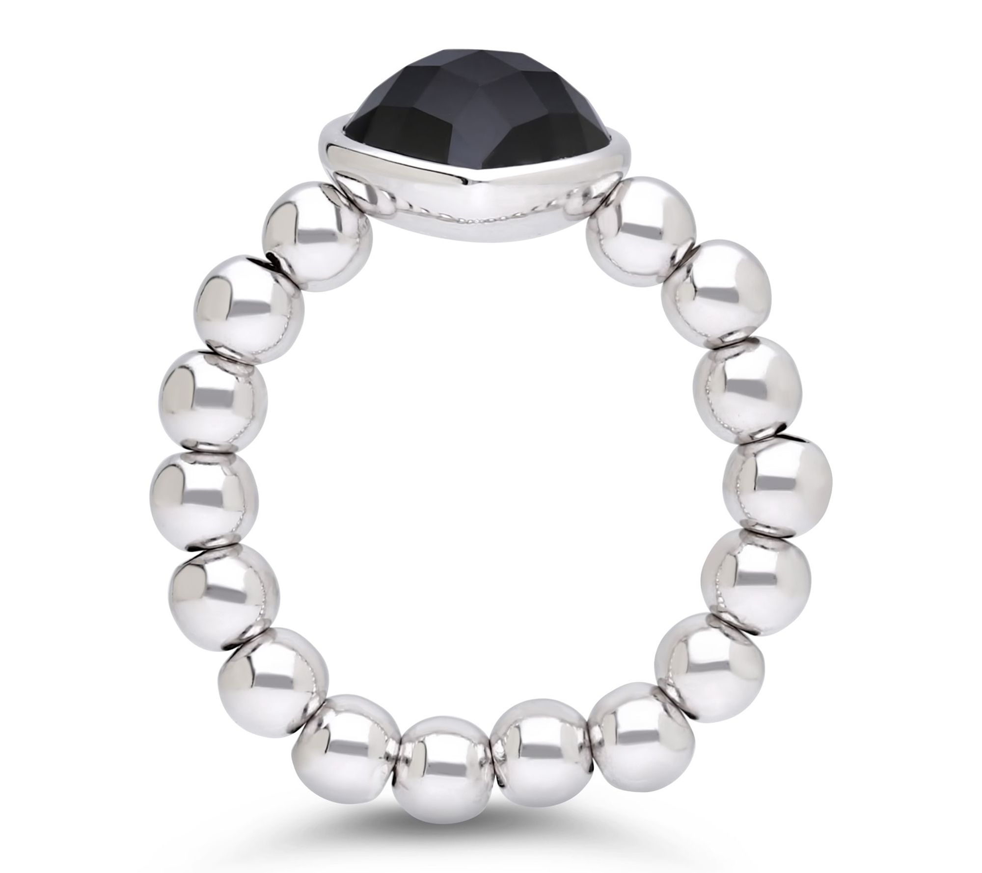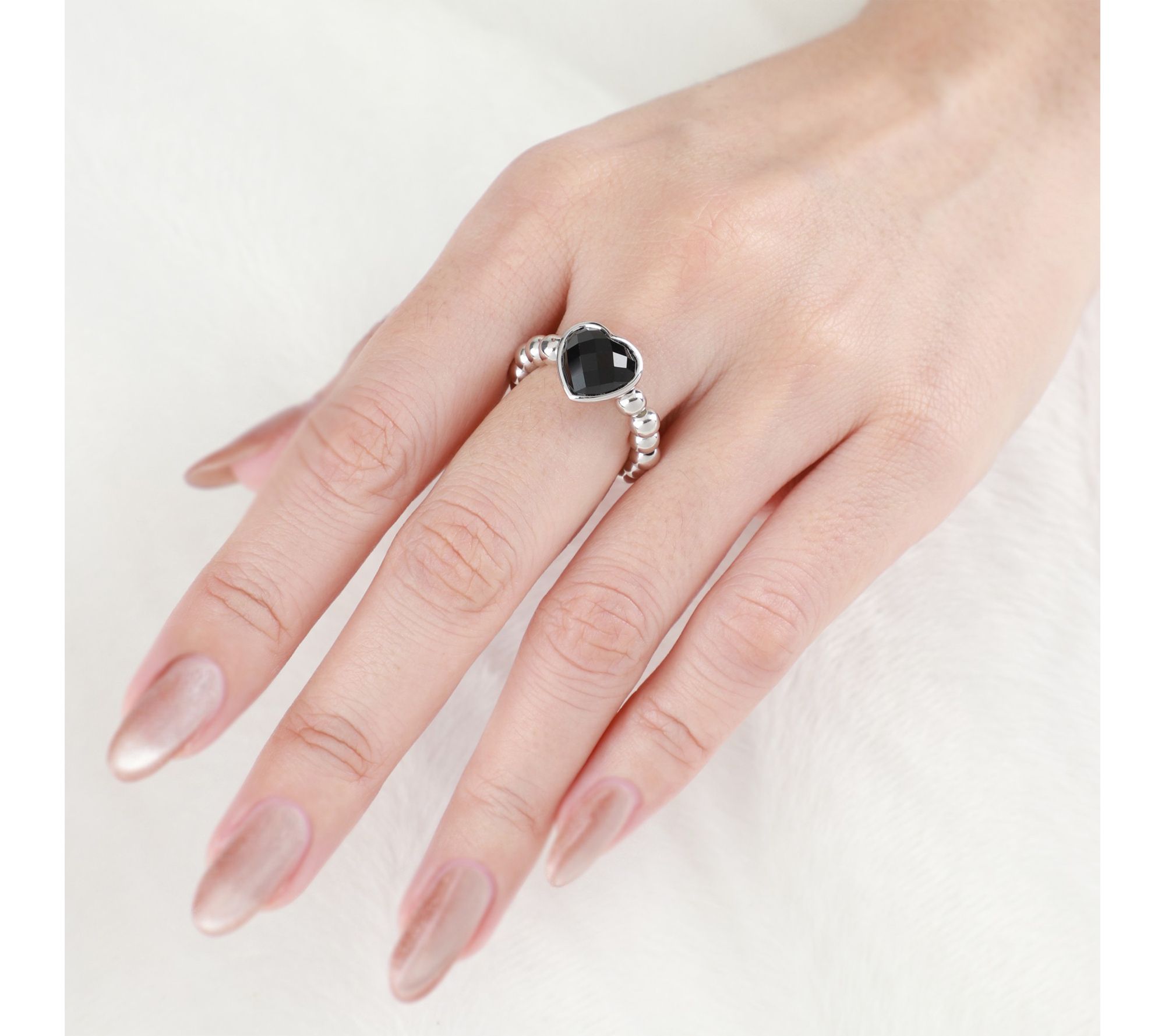 Add a touch of romance to your everyday look with this sterling silver ring -- a playful stretch design bedecked with 4mm beads and a heart-shaped faceted onyx gleaming at the center. Whether you're dressing up for an evening out or adding a subtle statement to your daily style, this beaded beauty effortlessly blends charm and comfort. From Elyse Ryan.