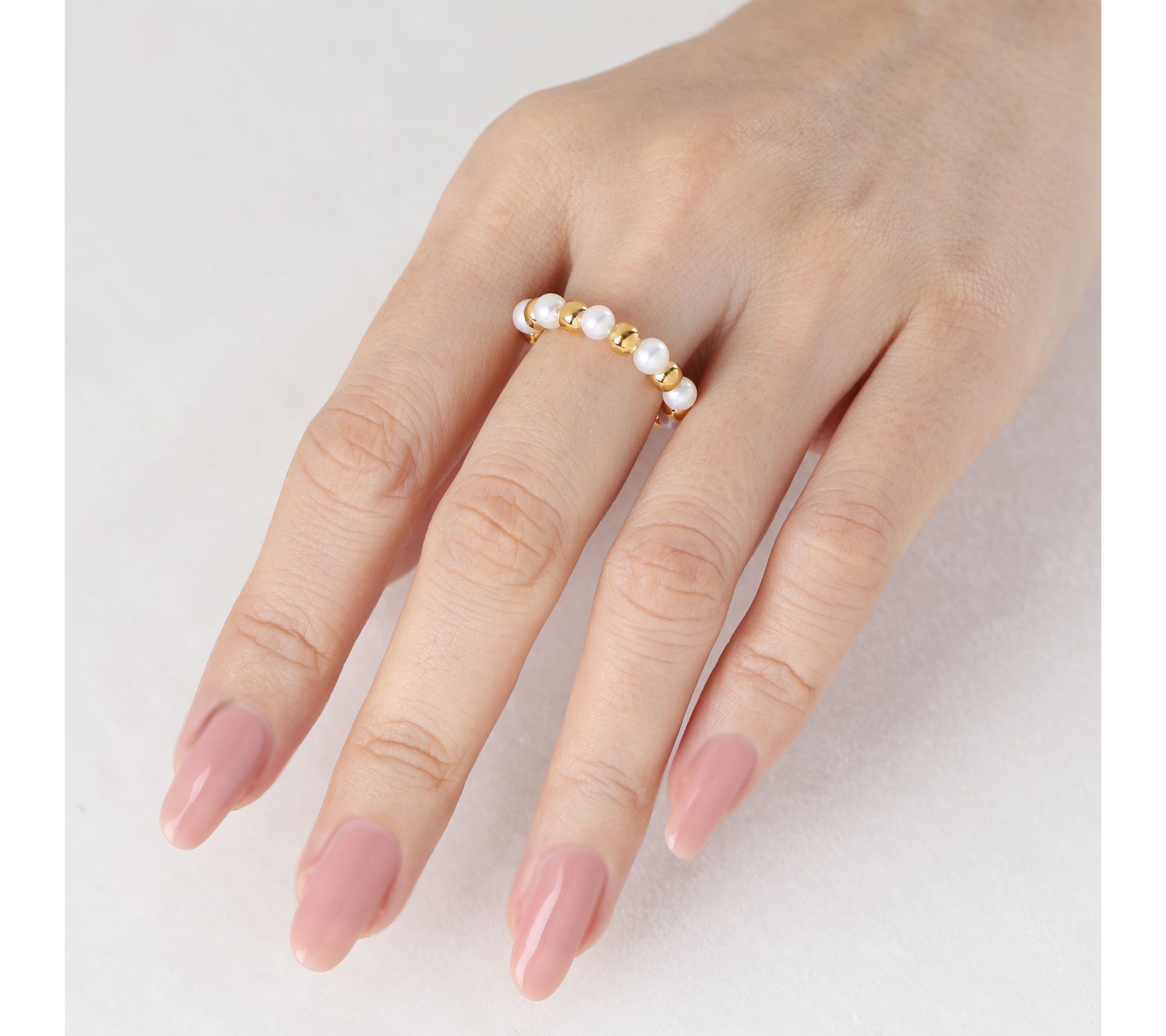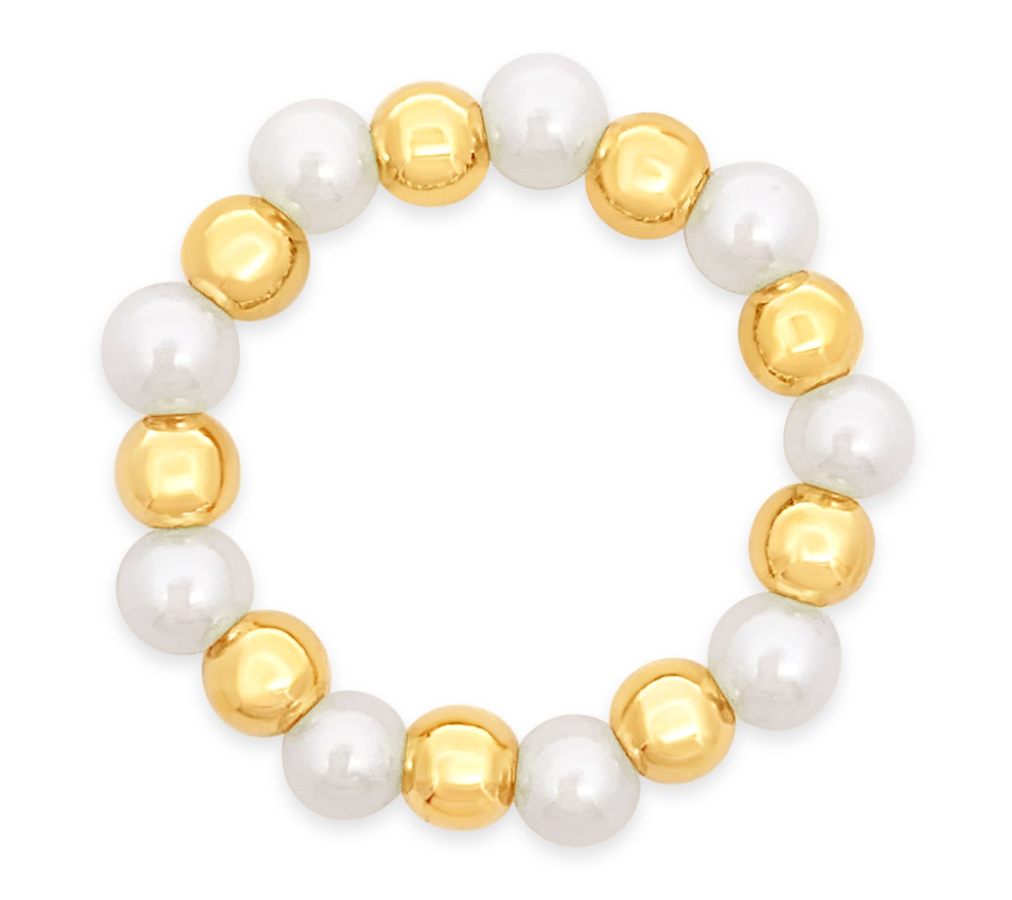 Bring a touch of radiance to your day with this cultured freshwater pearl ring. White cultured freshwater pearls and 14K gold-clad sterling silver beads are strung together on an easy-to-wear stretch band, offering both style and comfort for everything from brunch to an evening out. From Elyse Ryan.