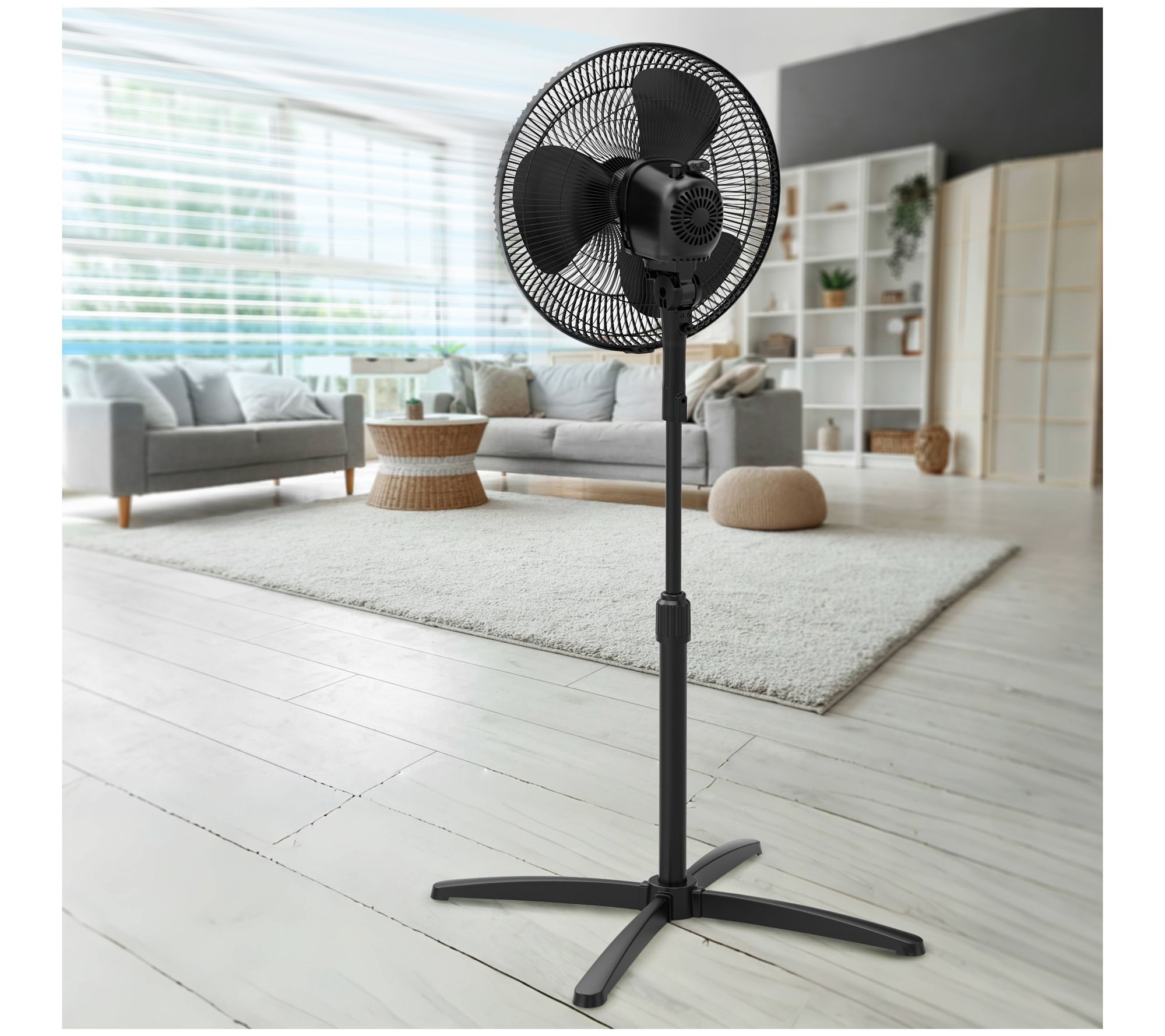 Enjoy effortless airflow throughout your living room, workspace, or bedroom with this versatile 16" oscillating pedestal fan. Tune the breeze to just your liking with three speed settings, an adjustable tilt, and customizable height, while the broad oscillation keeps everyone comfortable on warmer days. From Emerson.