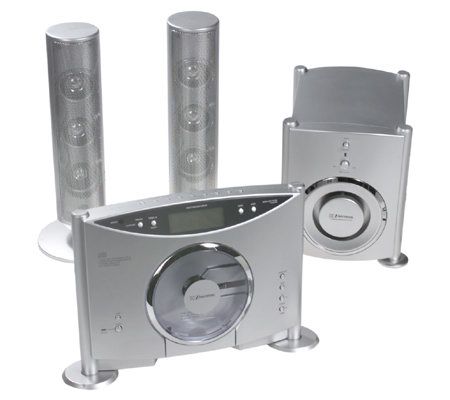 Perfect for your home or office, this executive-style CD stereo system from Emerson delivers sensational sound in a stylish package. It's equipped with a vertical front-loading CD mechanism, 16-track programmable memory, digital stereo tuner with 12 station presets, digital clock and timer, 90-minute sleep timer with auto shut-off, and a headphone jack. It also features dynamic sound cylinder speakers and an active subwoofer for powerful sound. Includes a remote control. Requires 2 AA batteries, not included.