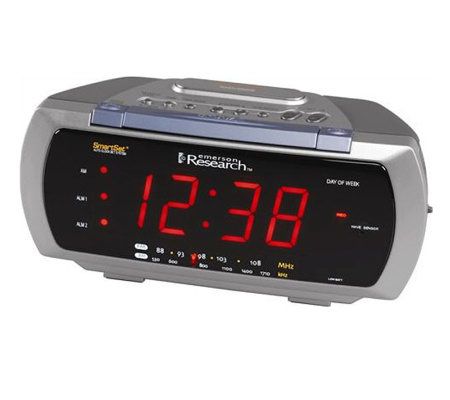 His and hers. The CKS3088 SmartSet clock radio has a built-in speaker and dual alarms that hit all the right notes to send you and your spouse on your way. From Emerson.