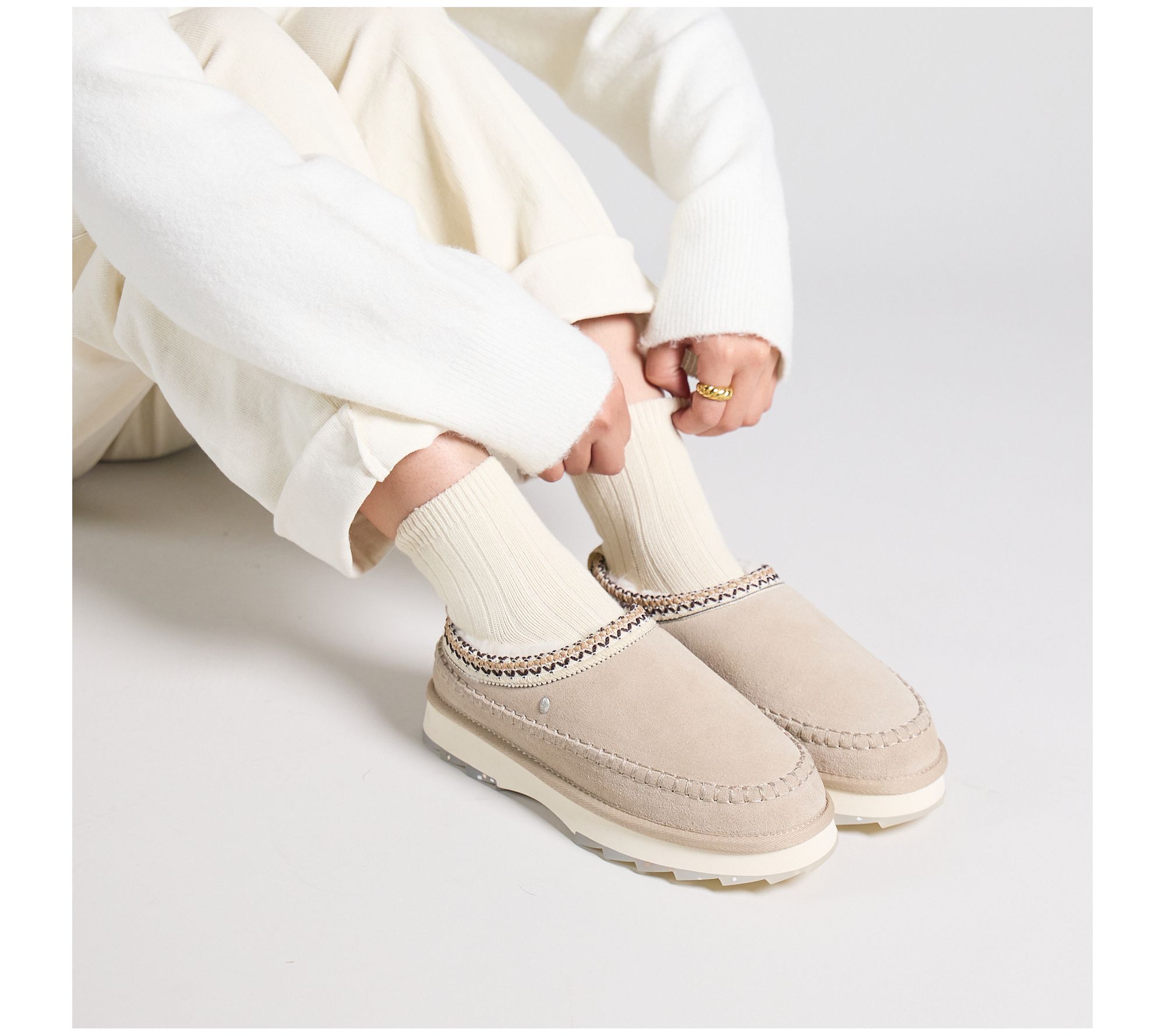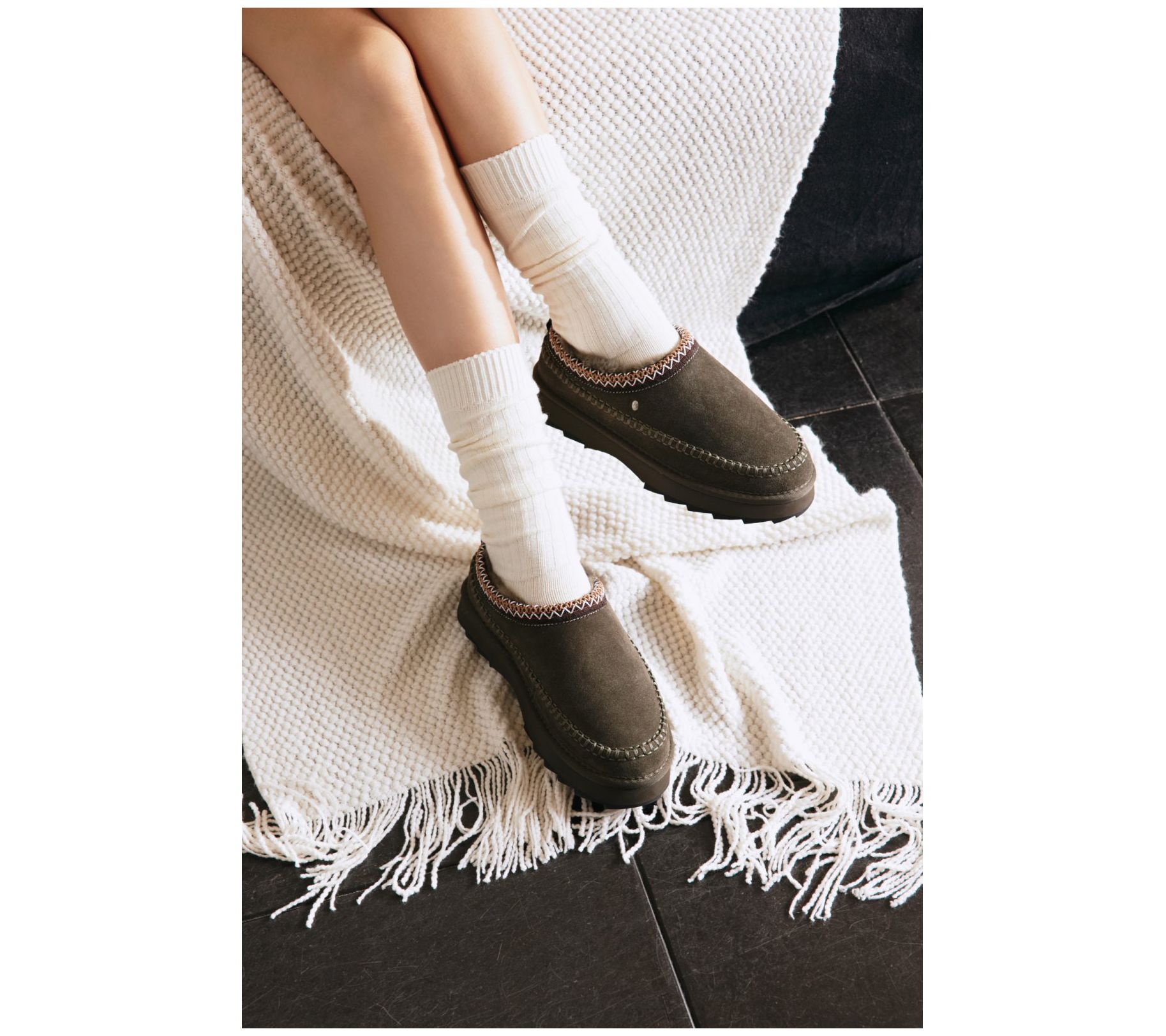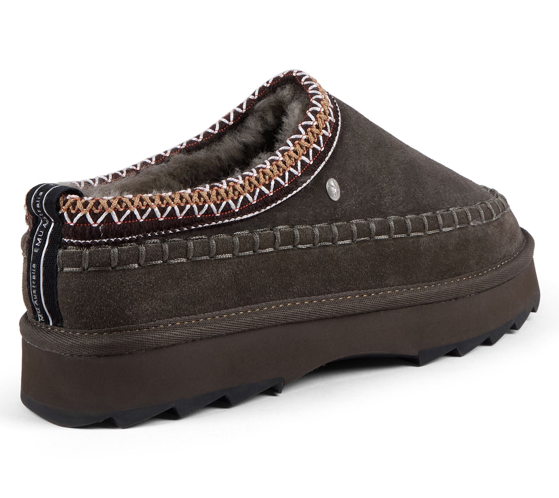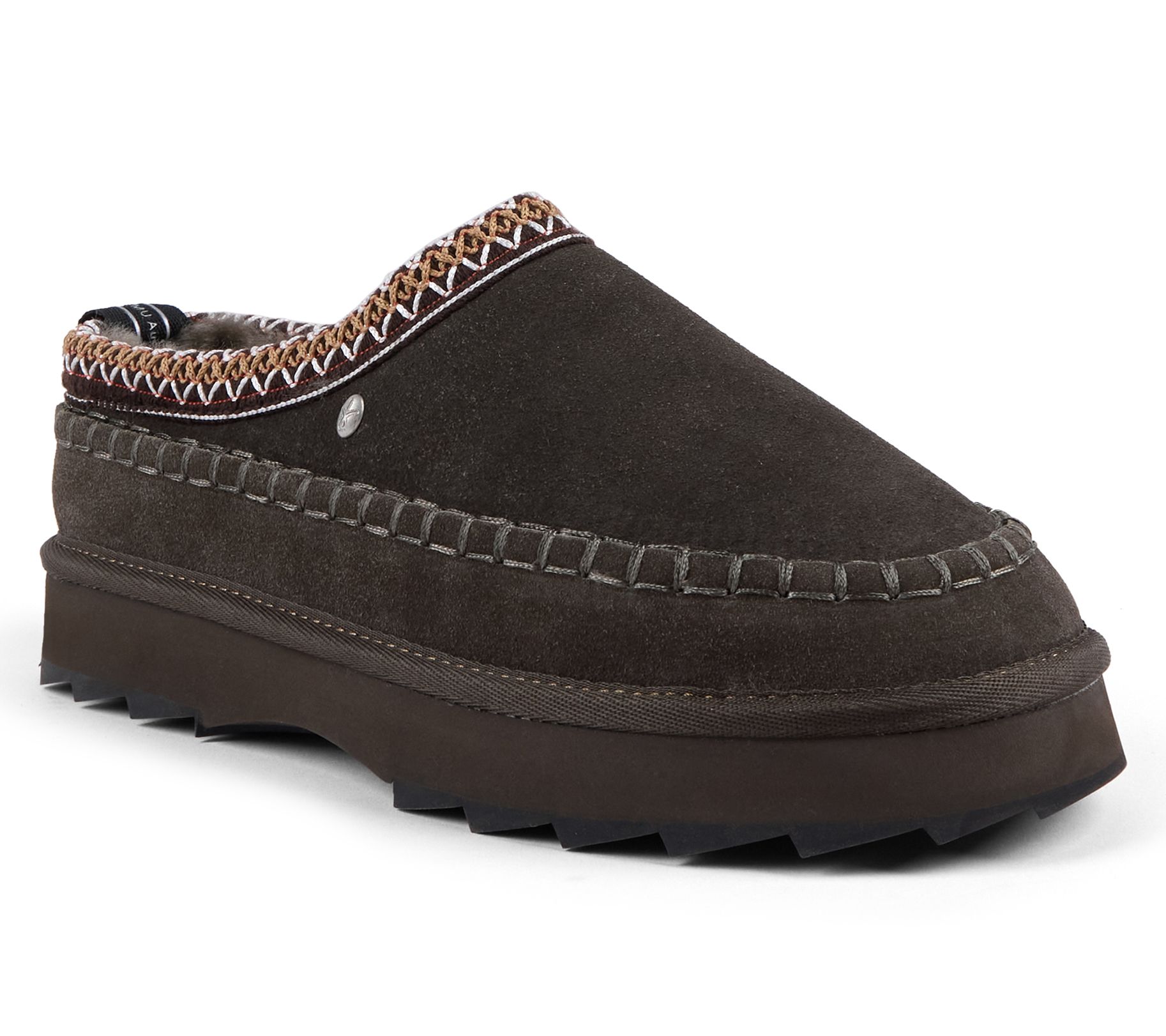 Soft and cozy, these suede leather platform slippers are stylishly designed with Aztec embroidered trim. Wear them around the house or when you have errands to run. From EMU Australia.