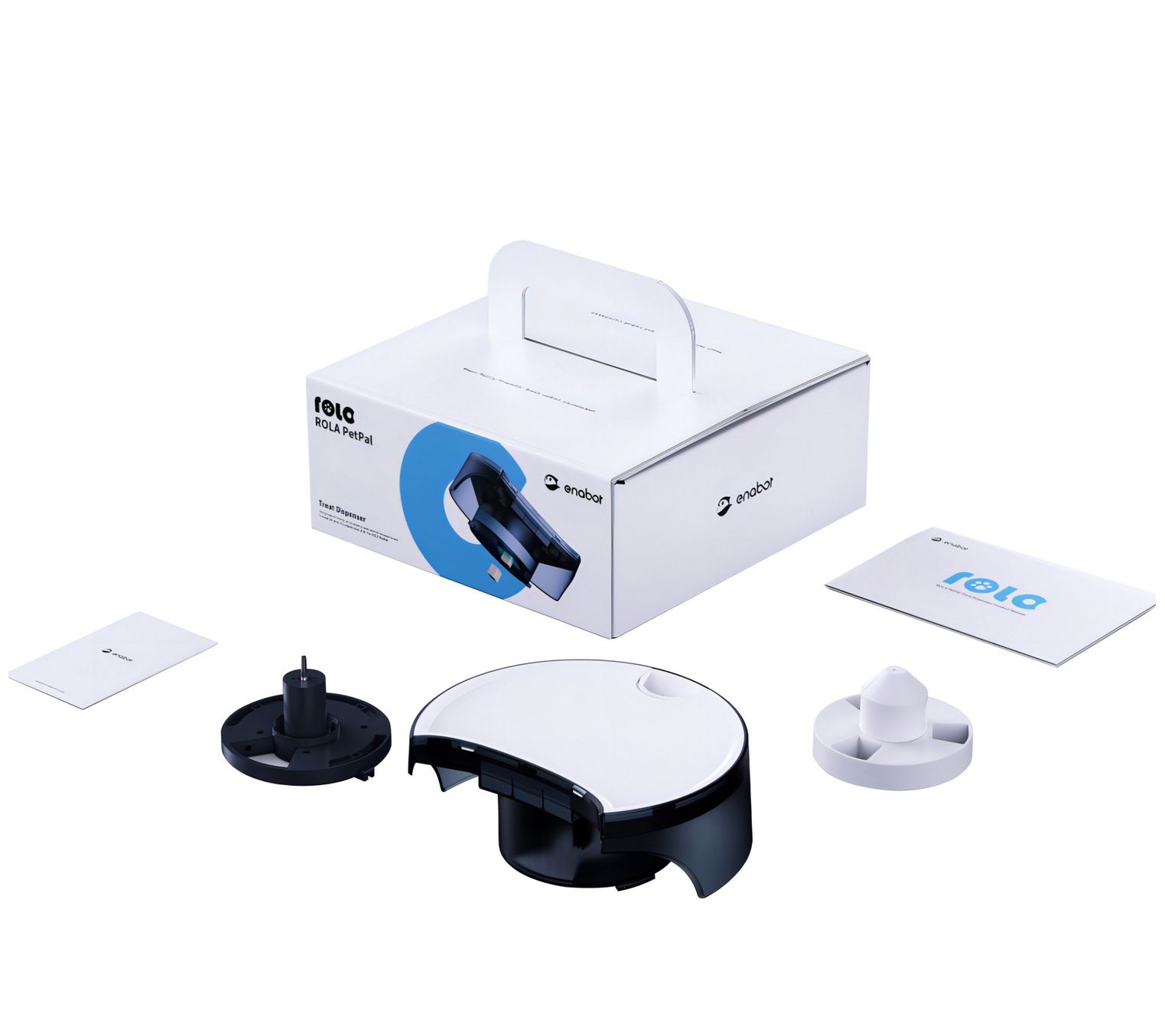 Easily keep your pets happy and engaged with the Enabot ROLA PetPal Smart Treat Dispenser. This smart accessory lets you remotely share treats with your furry friends using the ROLA app, creating fun and interactive moments. From Enabot.