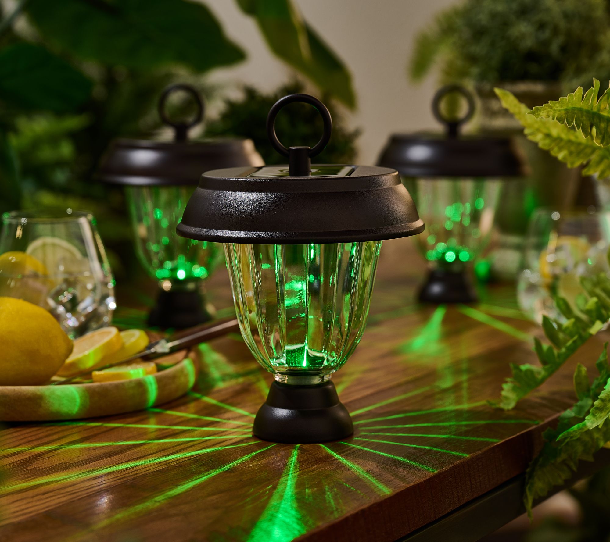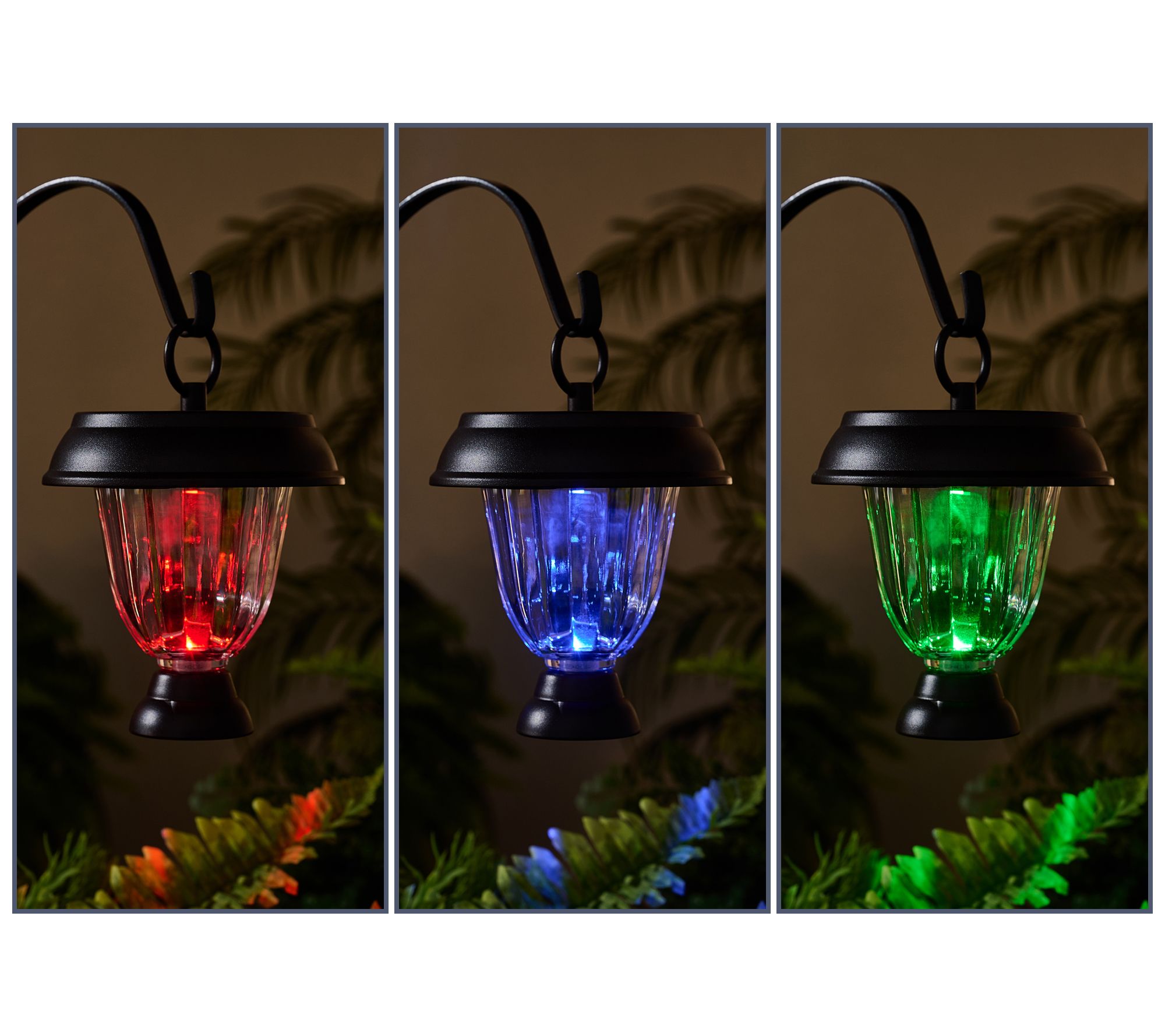 3-in-1 design: stake lights in ground, place on tabletop, or hang on hook (hooks not included)