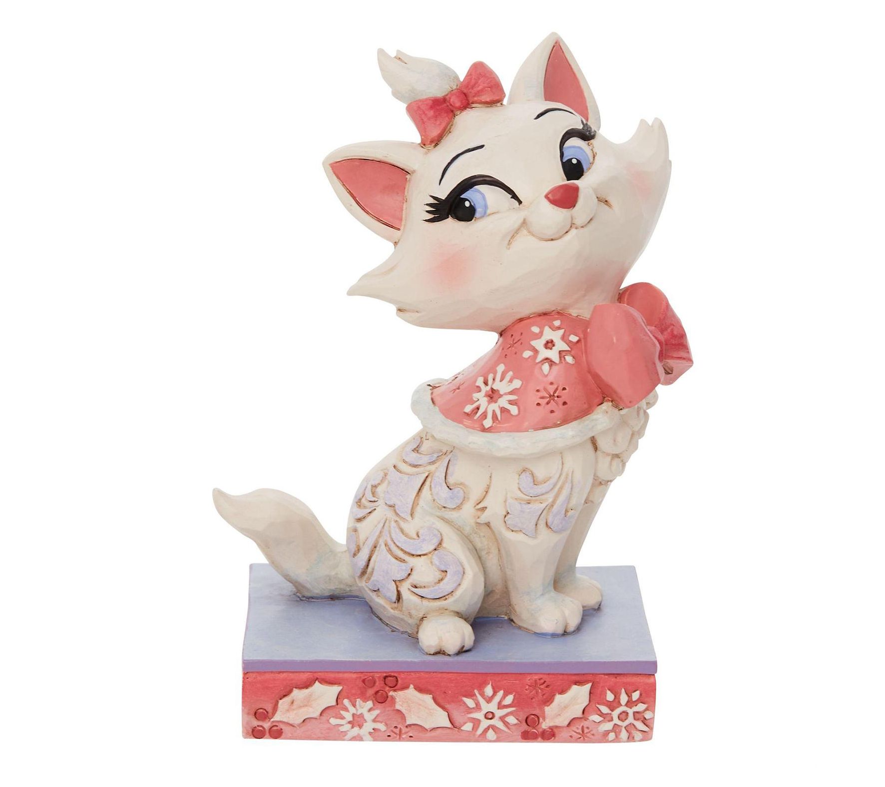 Celebrate the holidays with this figurine of Marie from The Aristocats showcasing a pink snowflake cape and signature folk art detailing. From Disney Traditions.