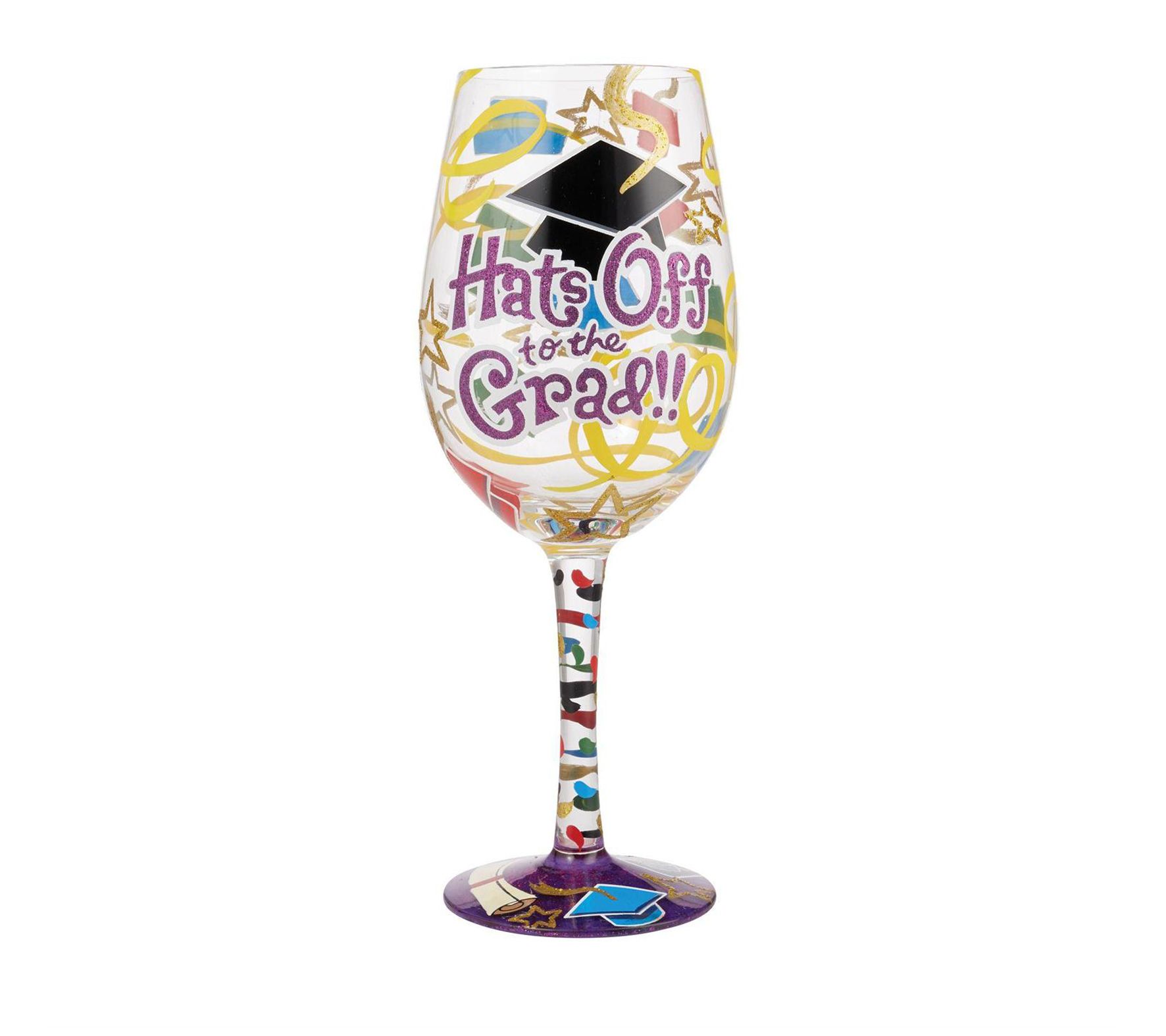 Years of hard work have paid off and now it's time to celebrate! This Hats Off To Grad wine glass is a fabulous vessel for toasting such a momentous occasion. From Lolita.