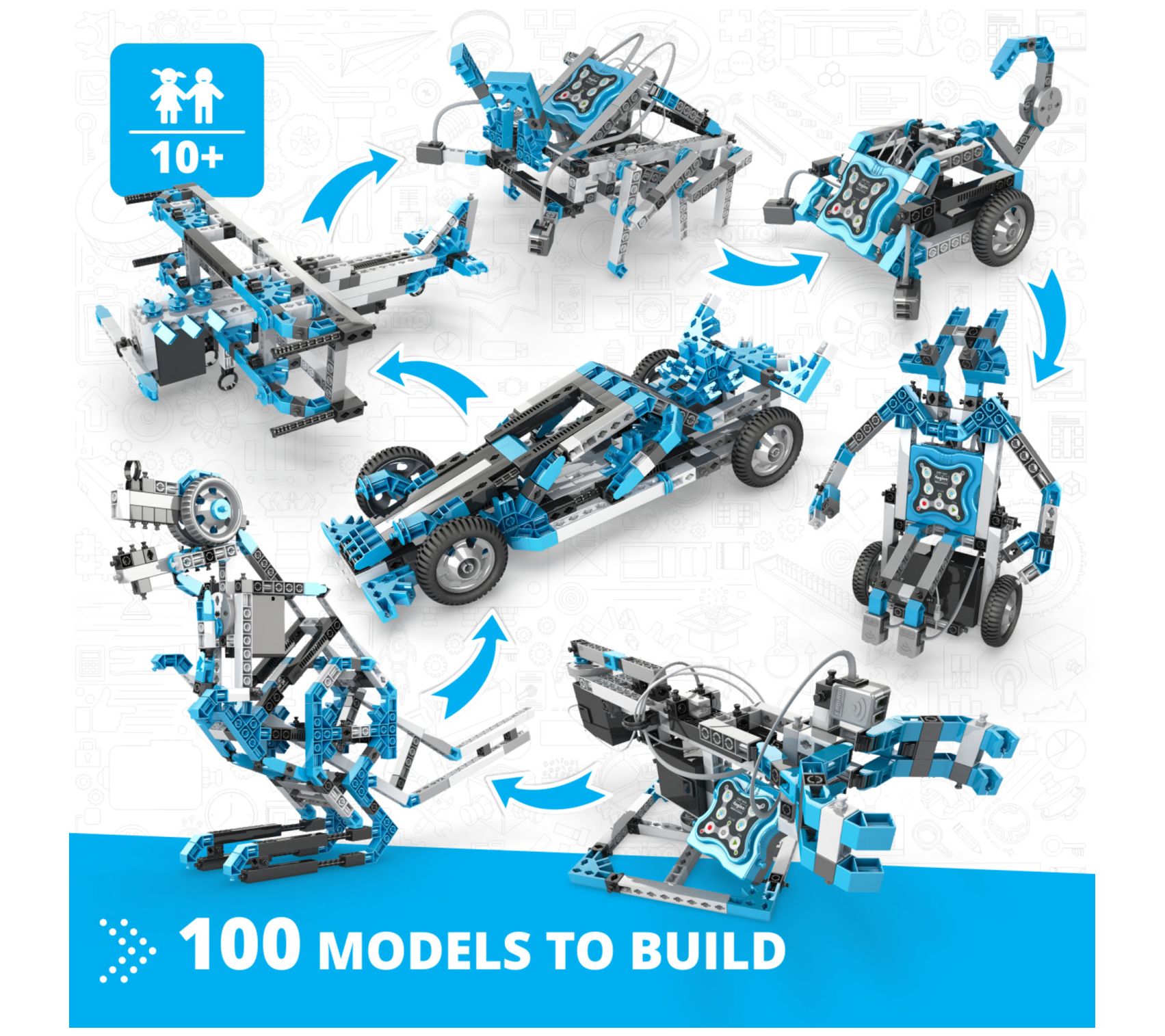 Unleash a world of creative possibilities as you build everything from cars to robotic arms with this engaging brick building playset. Featuring 100 different models, programmable features, and an award-winning controller, this versatile set turns each play session into an exciting, hands-on learning adventure. From Engino.