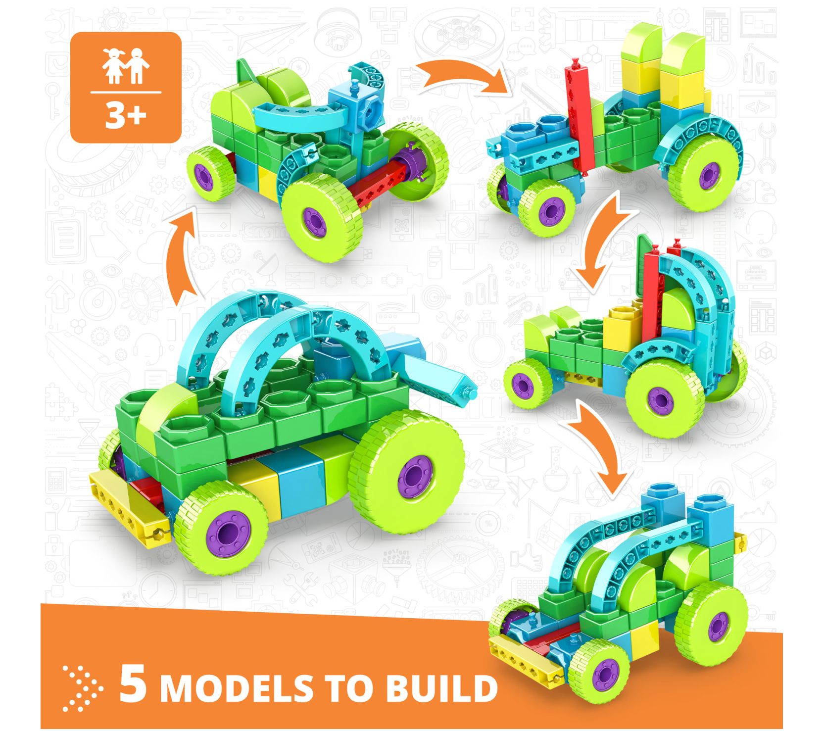 STEM learning sparks excitement with this Engino block set, as kids explore the world of vehicles while building five different models and delving into fun activities that boost literacy and numeracy. The included storybook and interactive 3D instructions make every building session both hands-on and educational, ideal for playdates or rainy days when little minds are eager to create. From Engino.