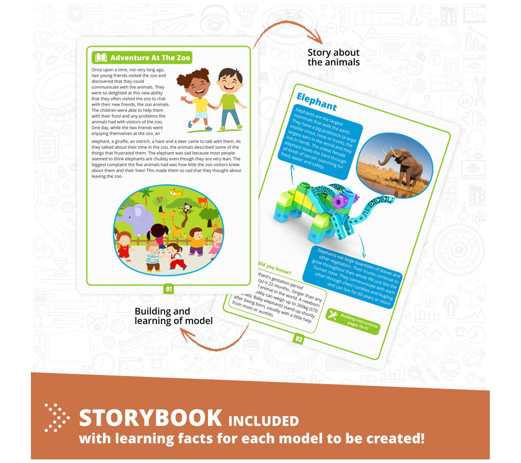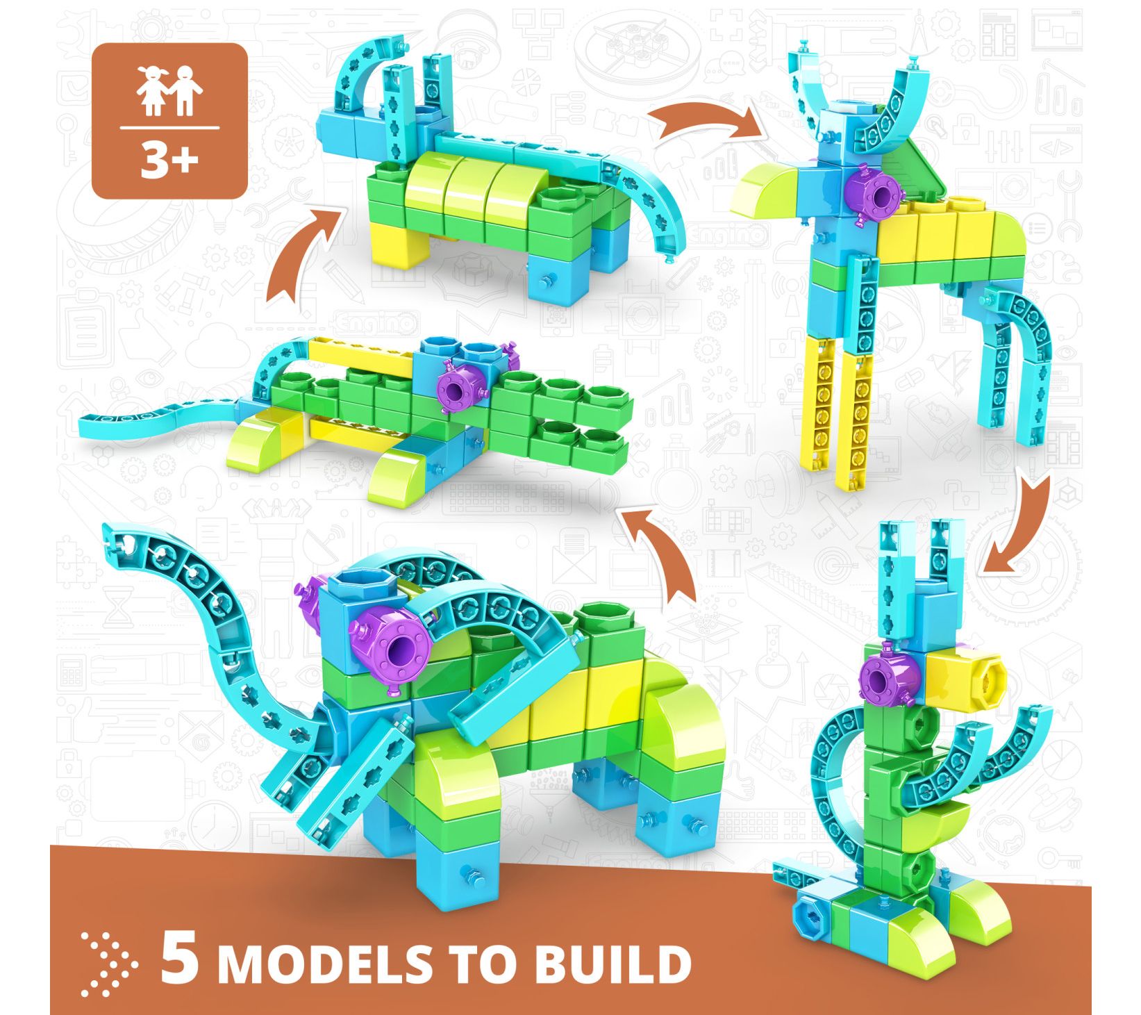 Kids can embark on imaginative adventures building wild animals with this engaging playset. Designed to foster an early love for science, literacy, and math, the construction blocks, storybook, and activities encourage creativity while teaching about animals and their habitats. From Engino.