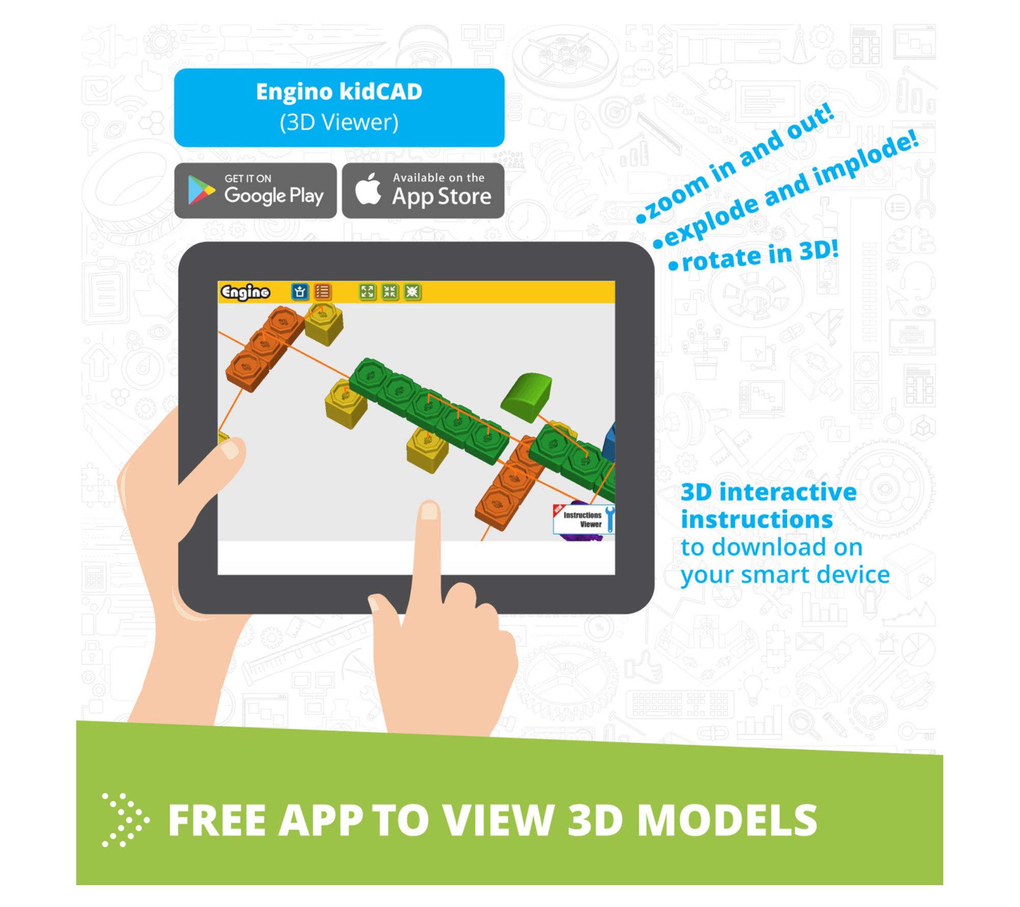 • Compatible with Engino app for 3D model viewing; printed instructions included