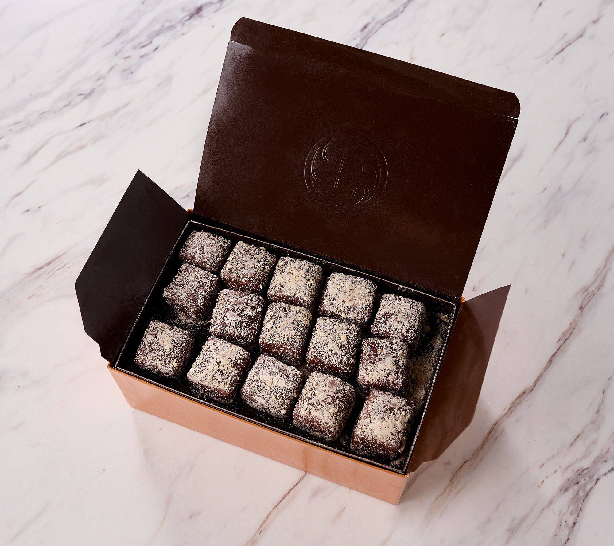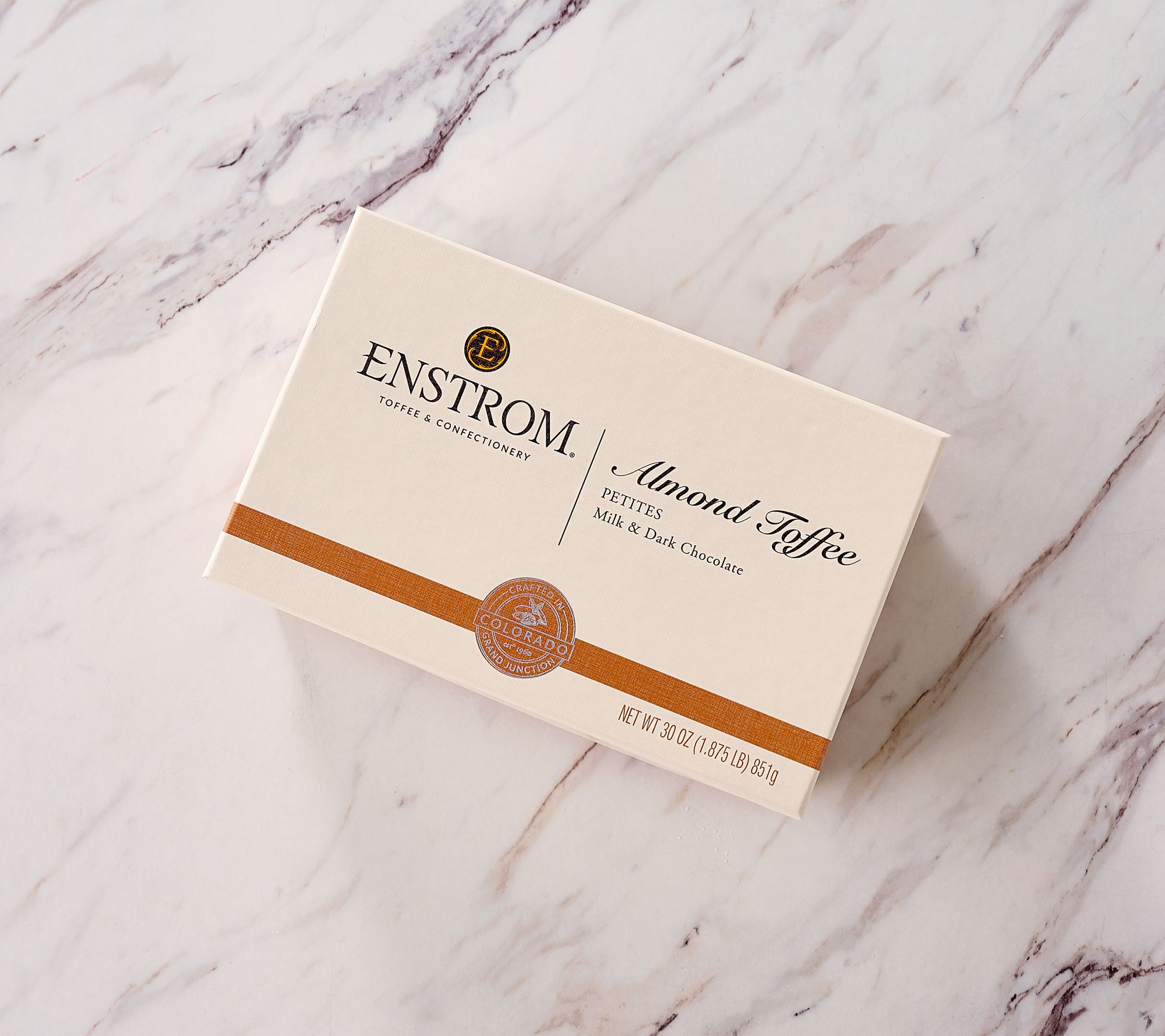A generous box of Enstrom's dusted toffee petites turns any occasion into a celebration. With each bite-sized piece, layers of buttery toffee, rich chocolate, and finely ground almonds create a delightful treat to savor, share, or gift to a fellow sweet lover. From Enstrom.