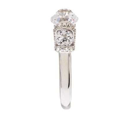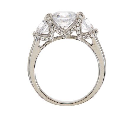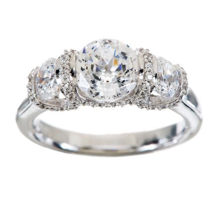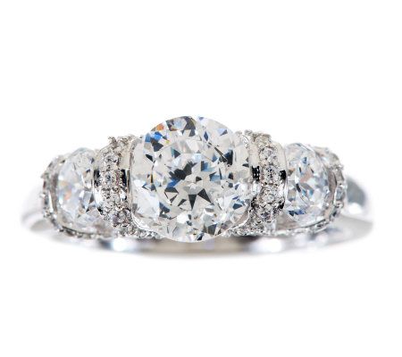 Who says fine jewelry is only for special occasions? Look like a million bucks every day with this dazzling ring. Round, semi-bezel-set, 100-facet Diamonique(R) simulated diamonds are framed by round, bead-set Diamonique simulated diamond accents in this three-stone stunner. From Epiphany(R) Platinum Clad(R) Sterling Silver and Diamonique Jewelry.