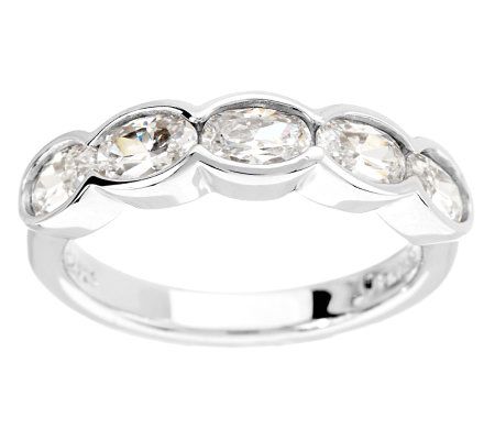Band ring with five oval, bezel-set Diamonique simulated diamonds; highly polished