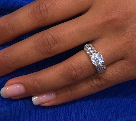 - Total Diamonique simulated diamond weights are approximate: Center 2.00 carats; Sides 1.20 carats