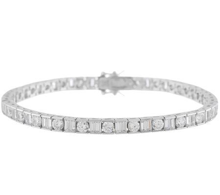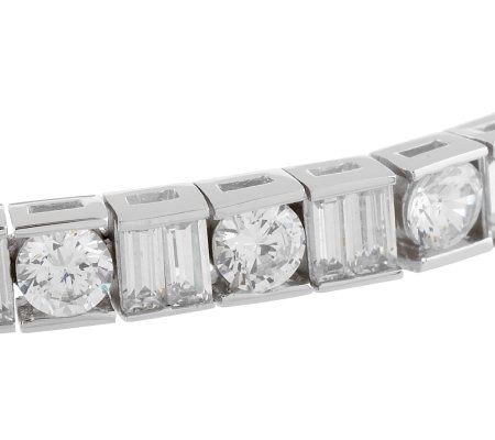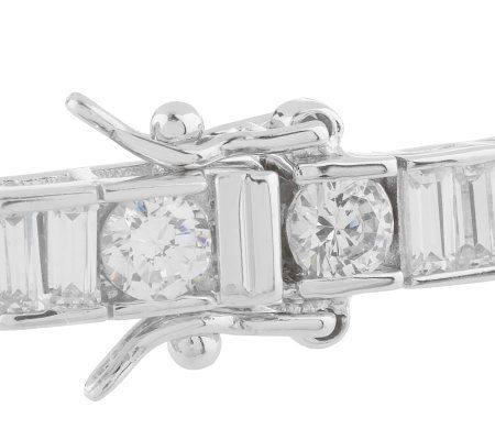 Classic shine. An alternating design of round and baguette Diamonique(R) simulated diamonds in channel settings stretches from end to end along this spectacular tennis bracelet. From Epiphany(R) Platinum Clad(R) Sterling Silver and Diamonique Jewelry.