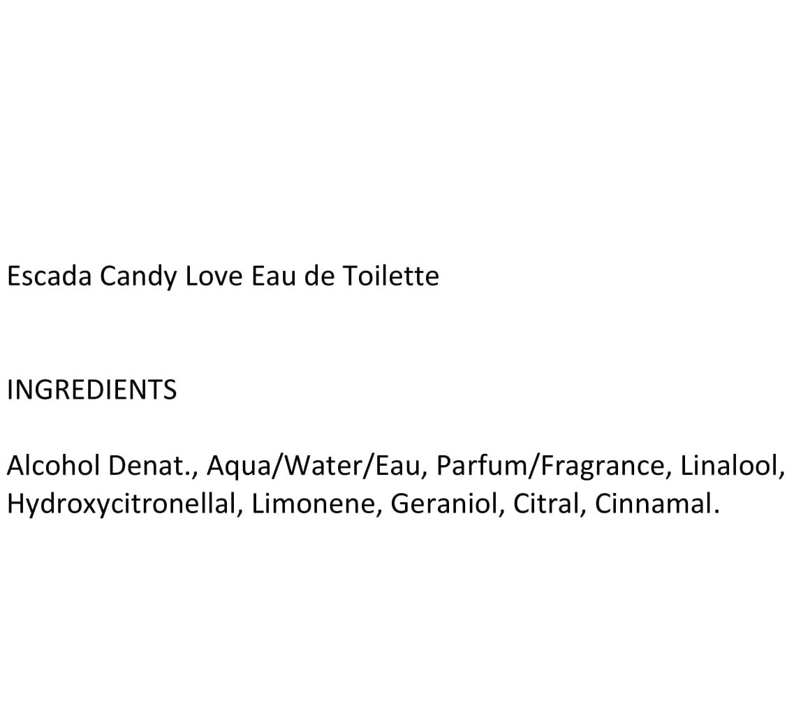 Escada Candy Love eau de toilette creates a dreamlike world with a playful scent. The adventure begins with a candy apple aroma -- a vibrant explosion of joyful cheer evoking a laughter-filled funfair. The second attraction, a delicate rose centifolia heart, colors the delicious journey with its delicate and feminine scent that takes you for a ride on a carousel of flowers. The exploration of Candy Love continues with a delightful vanilla whipped cream note -- a touch of sweetness to envelop the fragrance in a creamy embrace. What's even more delicious is that the main notes come from ingredients like apple, rose centifolia, and green mandarin.