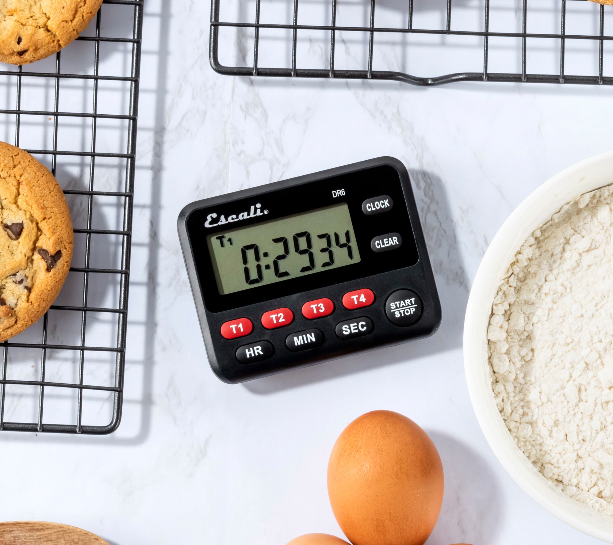 Organize your time with ease using this multi-track timer that lets you count up or down for four separate events. From Escali.