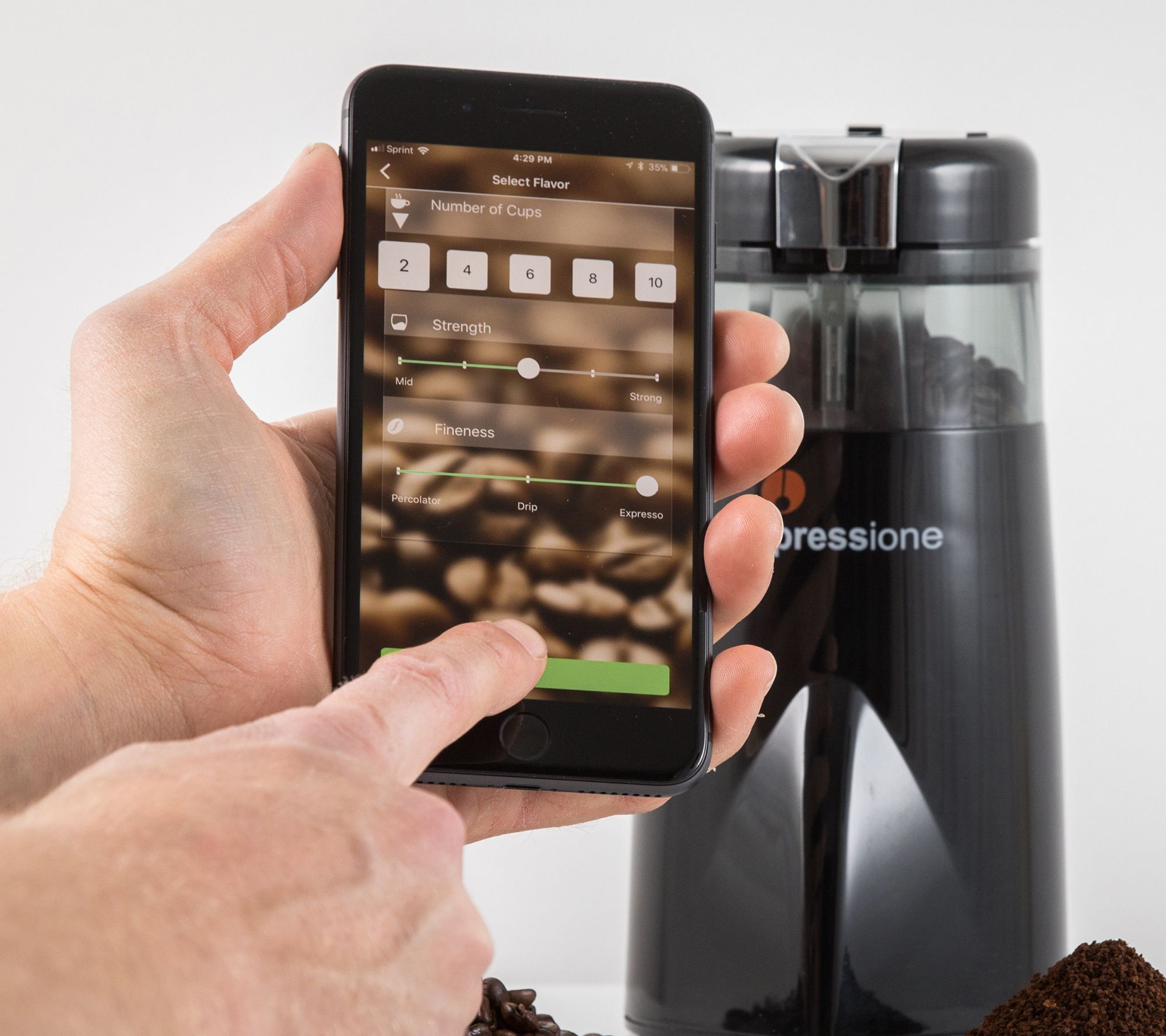 This rapid-touch grinder makes grinding fresh coffee beans, dry herbs, and spices a breeze. Connect it to your phone to control the coffee strength, fineness, and cup settings. From Espressione.