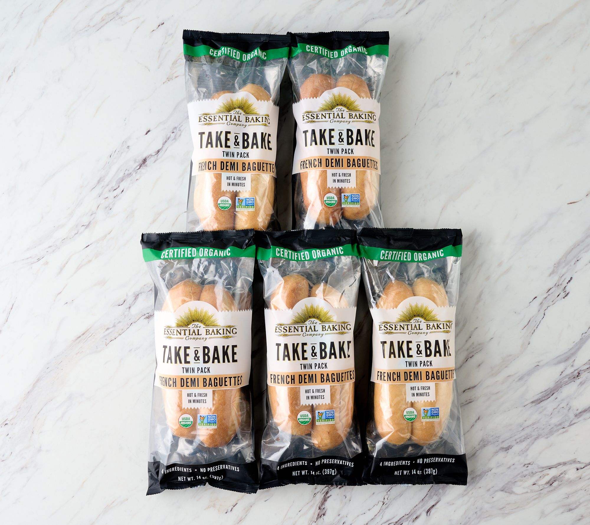 Skip the trip to the bakery and make fresh bread at home! These demi baguettes not only taste great, they're pantry friendly with locked-in freshness for up to six months. From Essential Baking Co.