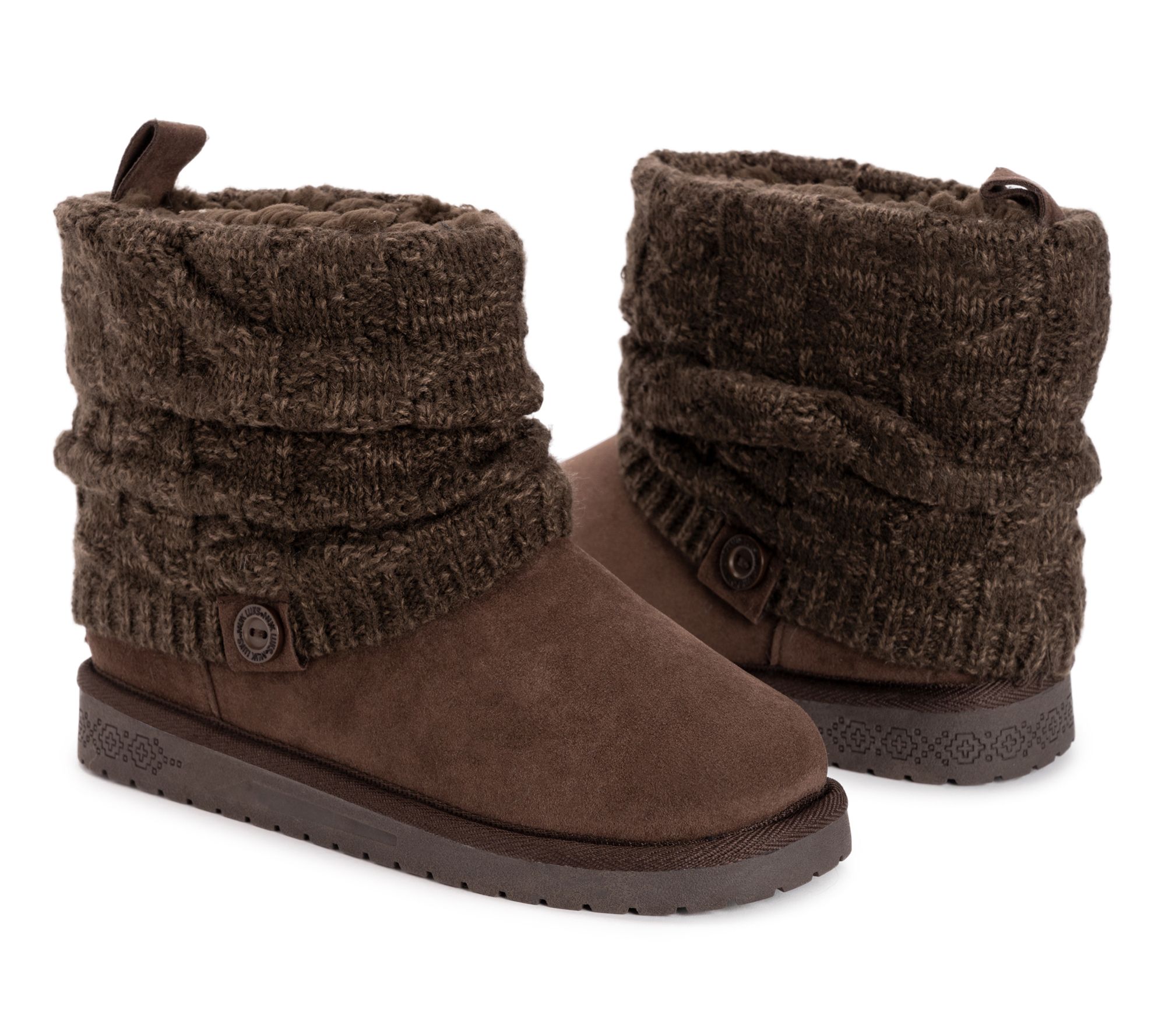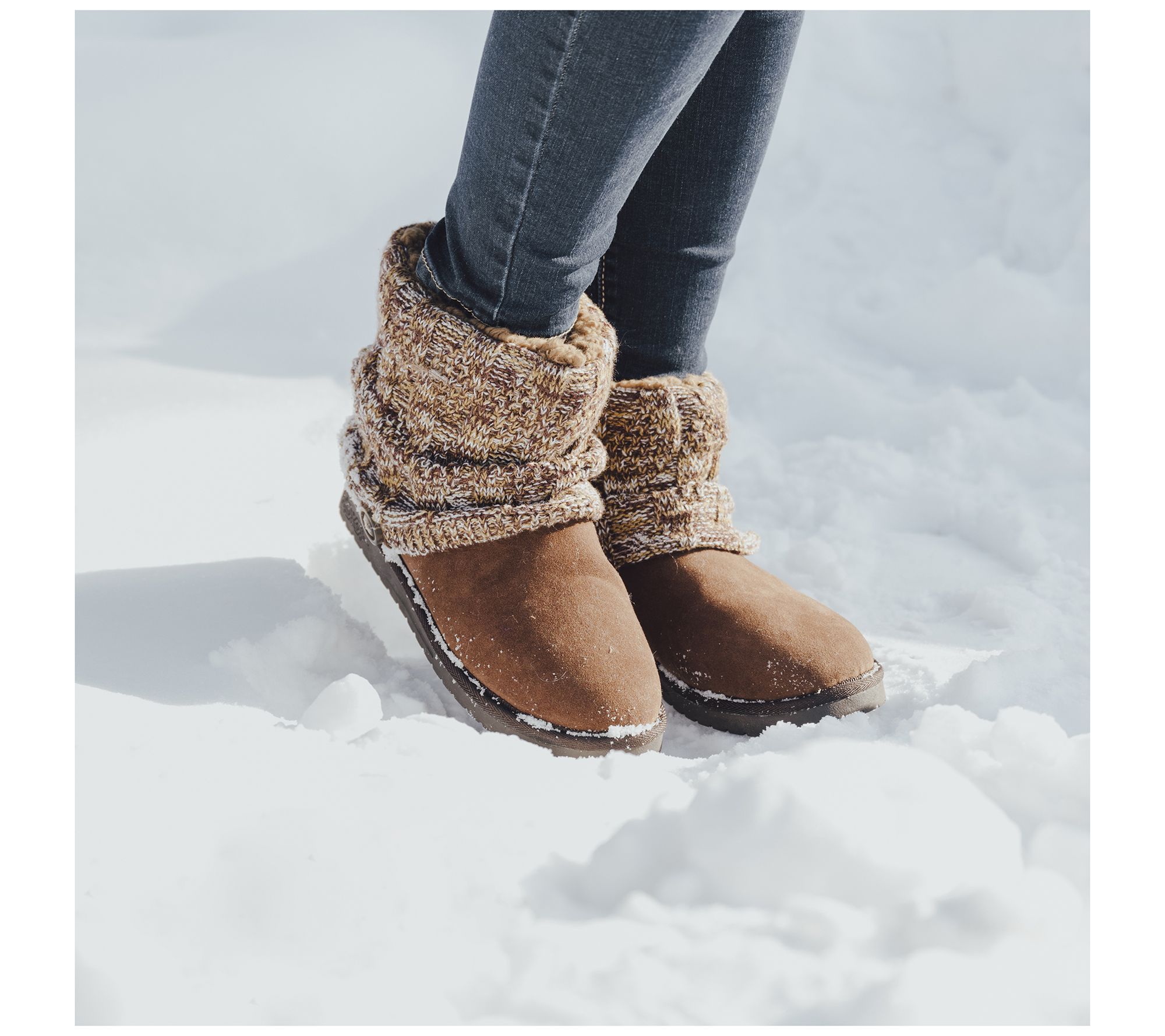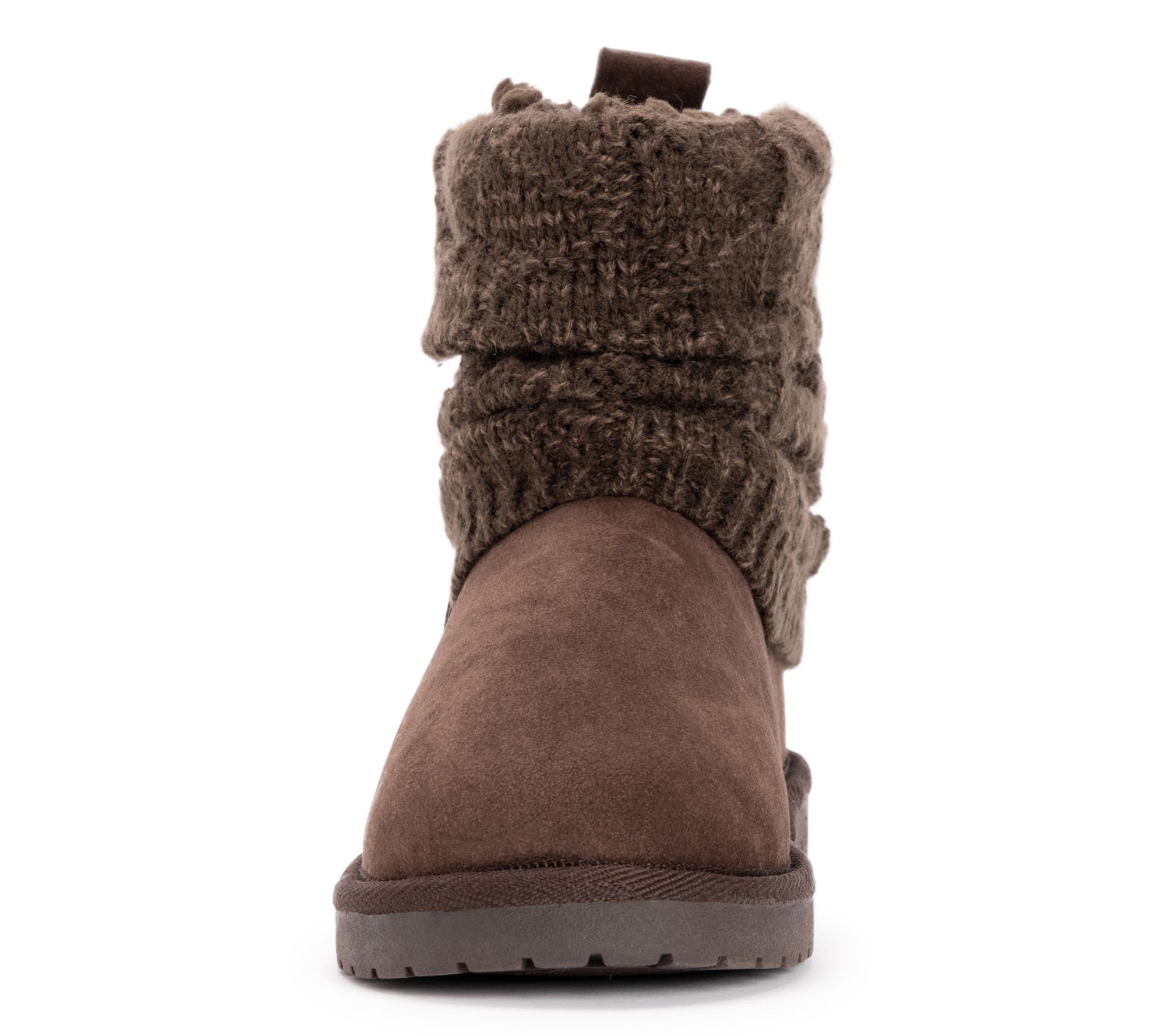 Tackle cold weather this season with Essentials by MUK LUKS Women's Laurel Boots. A classic ankle bootie with a decorative knit overlay and pull-on tab lets you slip into the plush comfort of these casual booties with ease. From Essentials by MUK LUKS.