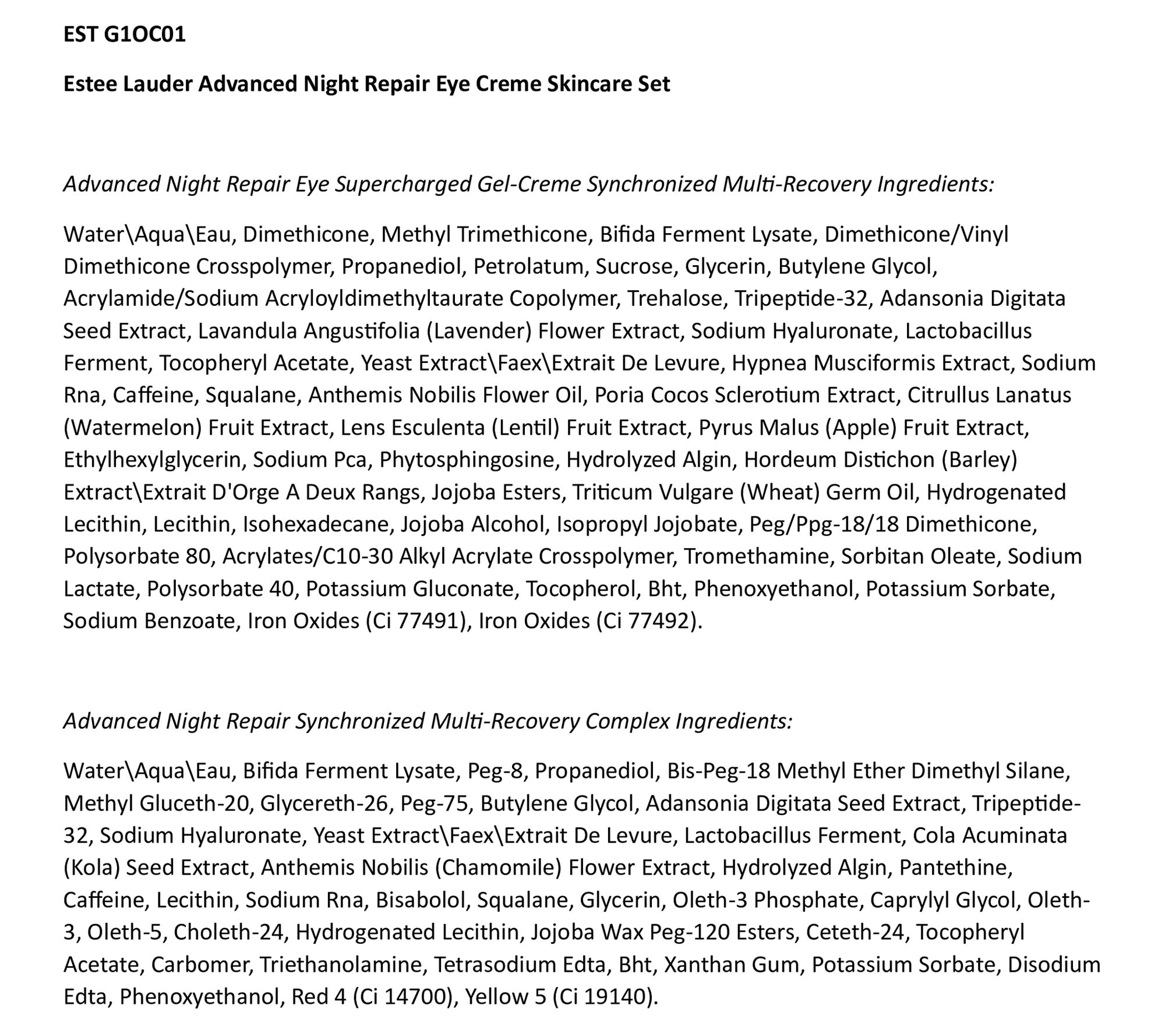 How do I use it: Apply Advanced Night Repair Serum in the morning and evening on clean skin before your moisturizer. Apply Advanced Night Repair Eye Supercharged Gel-Creme in the morning and evening around eye area.