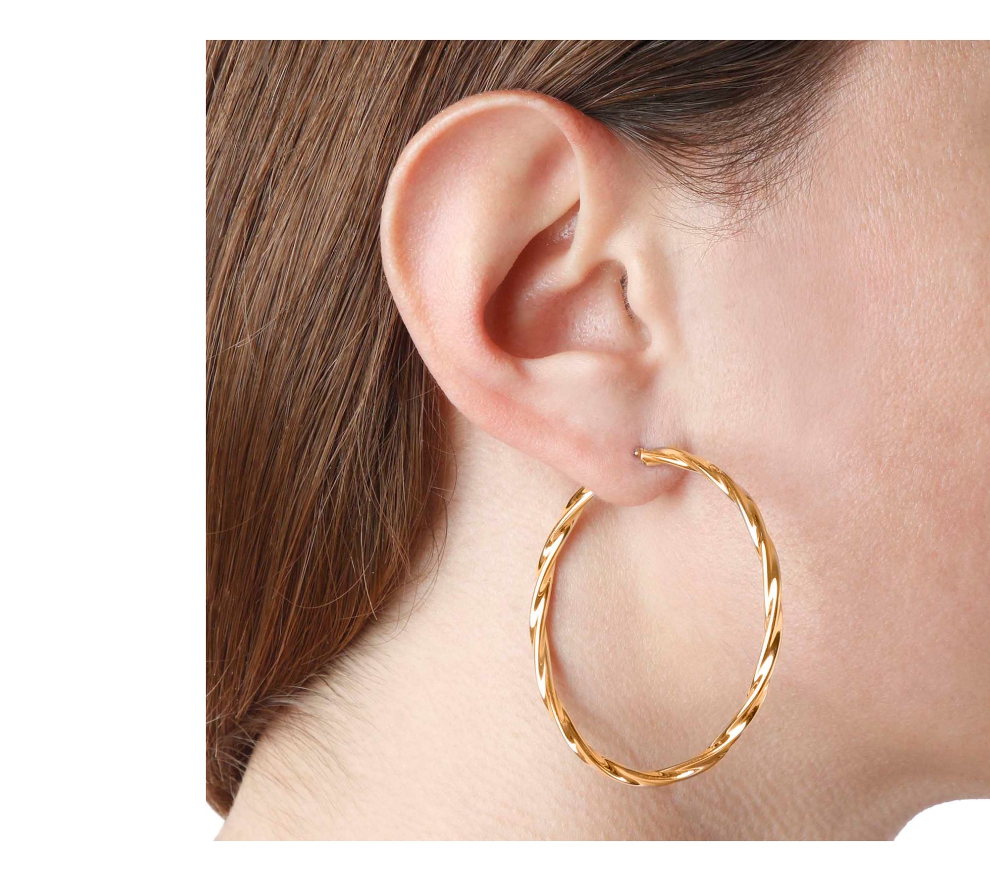 Ready to bring a dash of glamour to your everyday routine or a special night out? These Italian-crafted twisted hoops shine with bold elegance while feeling effortlessly lightweight. Let their dimensional, textured design make a stylish statement -- easy to wear, easy to love. From EternaGold®.