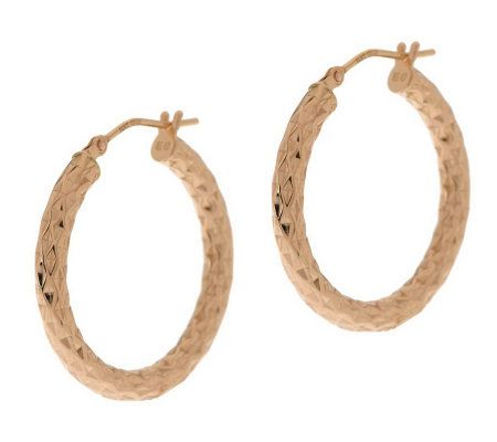 Round hoops with an allover diamond-cut chevron pattern; highly polished
