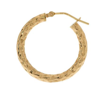 What's the hoopla all about? Texture and shine in gleaming 14K gold. An allover diamond-cut chevron pattern gives these round hoop earrings a dimensional design. From the EternaGold(R) Collection.