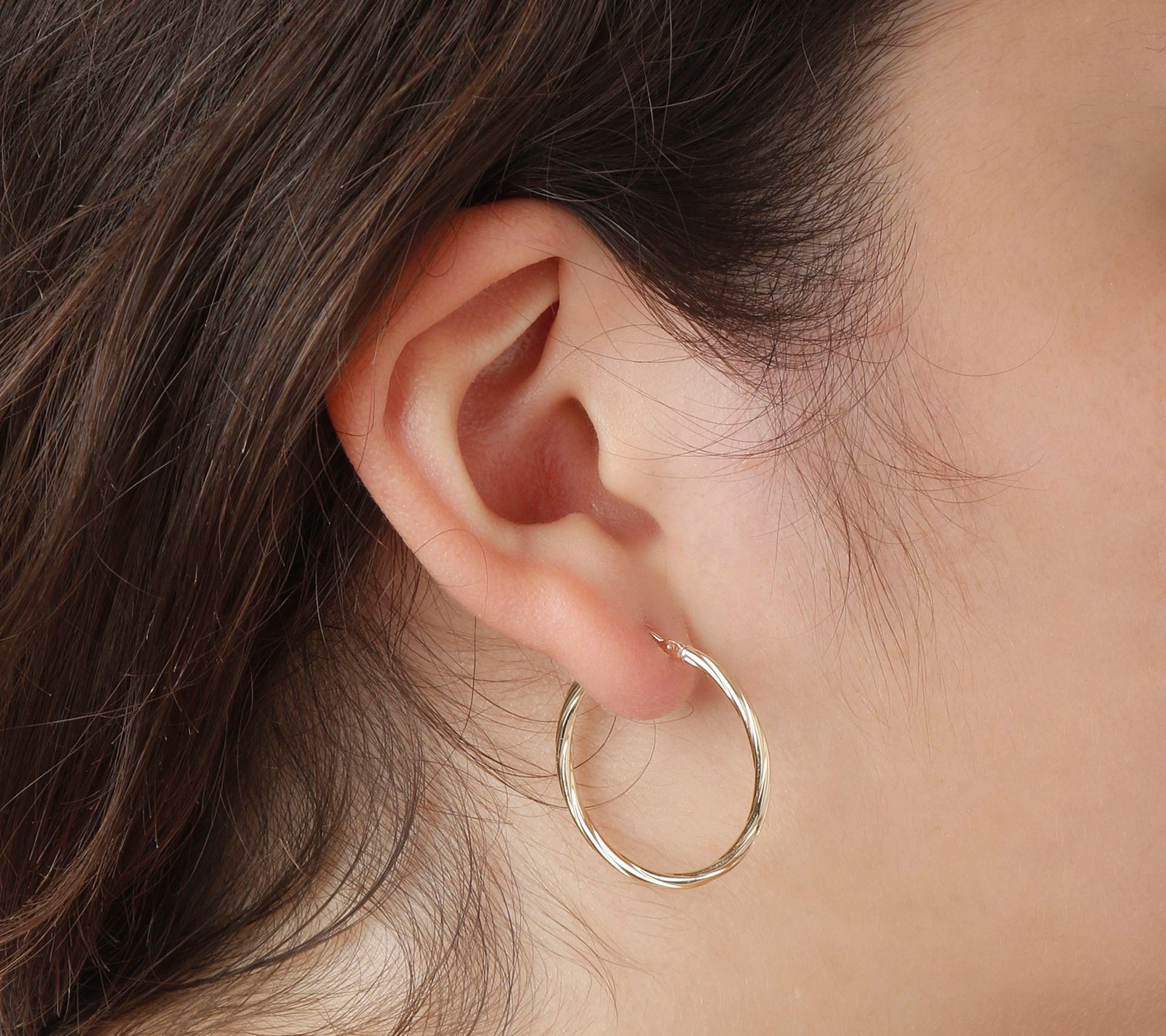 • Round hoop with a twist design; polish finish