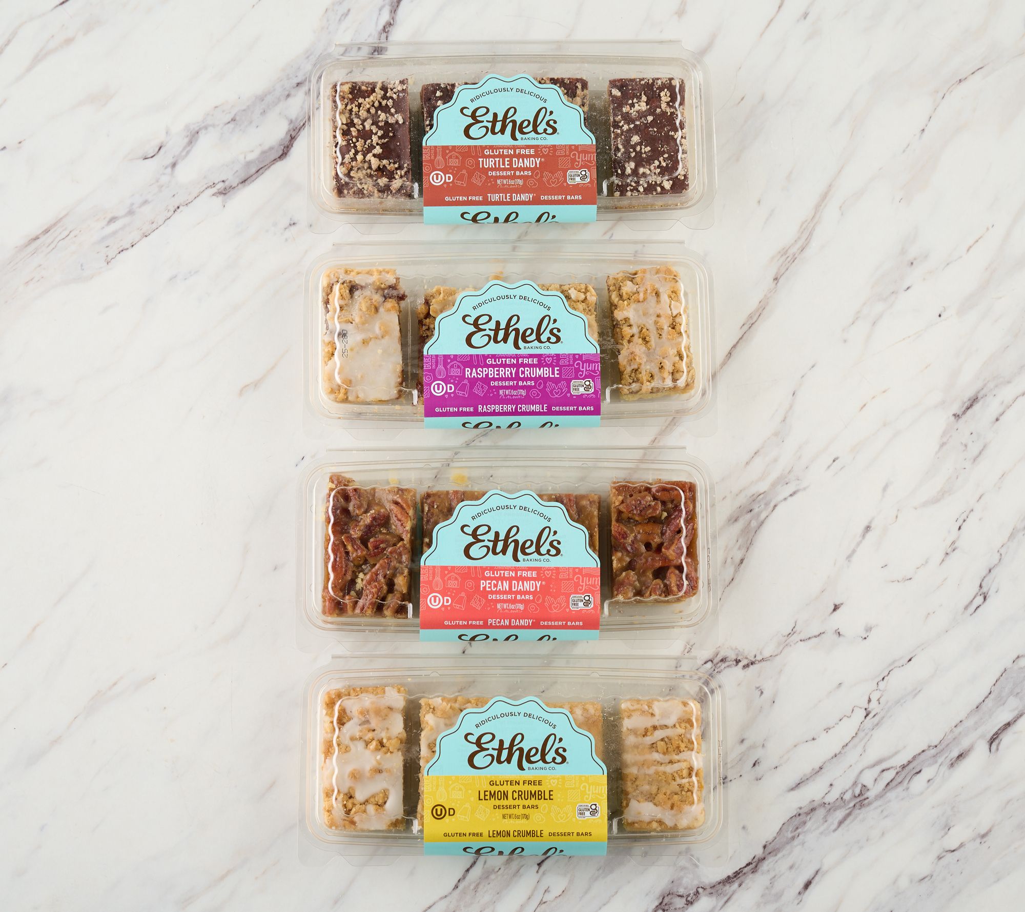 Share a tray of decadent fruit and nut dessert bars to sweeten your next brunch, send a thoughtful treat, or finish dinner with something special. Cut as you like -- each bar layers buttery shortbread with caramel, pecans, tangy lemon, or raspberry, sure to satisfy any craving. From Ethel's Baking Co.