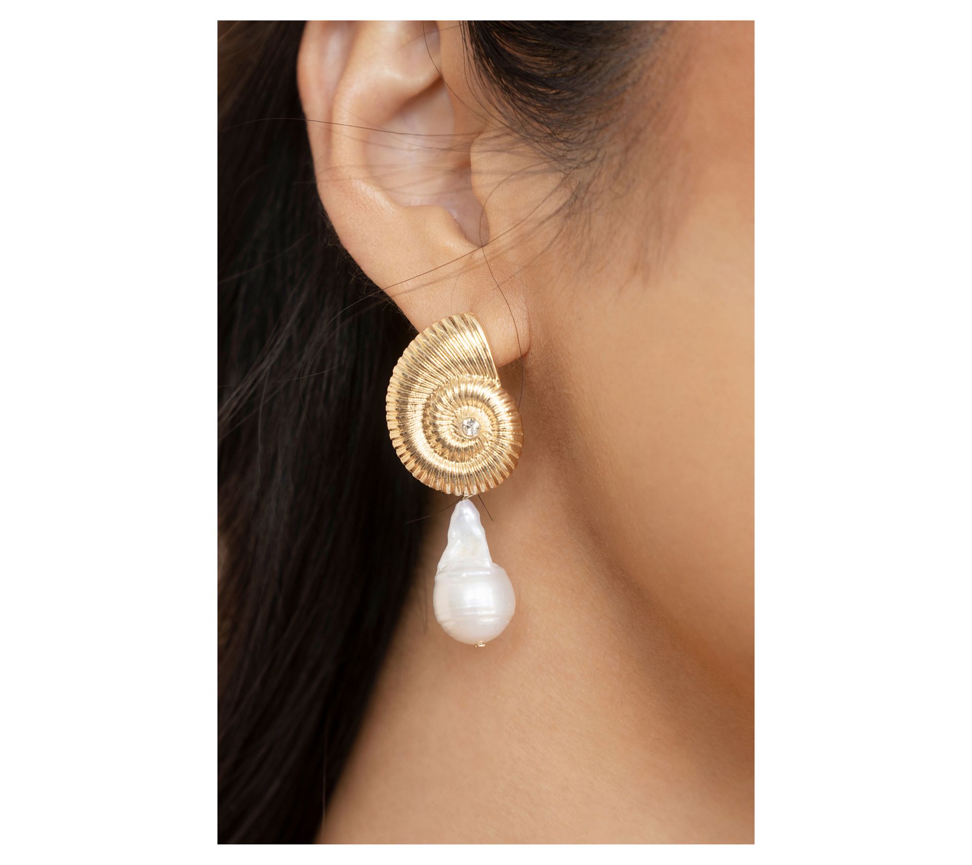 Seaside vibes go wherever you do with these dazzling shell-inspired drops, blending luminous cultured freshwater pearls and delicate crystals for a look that turns up every outfit. From a brunch with friends to an evening by the shore, this pair brings an easy touch of elegance to your day. From Ettika.